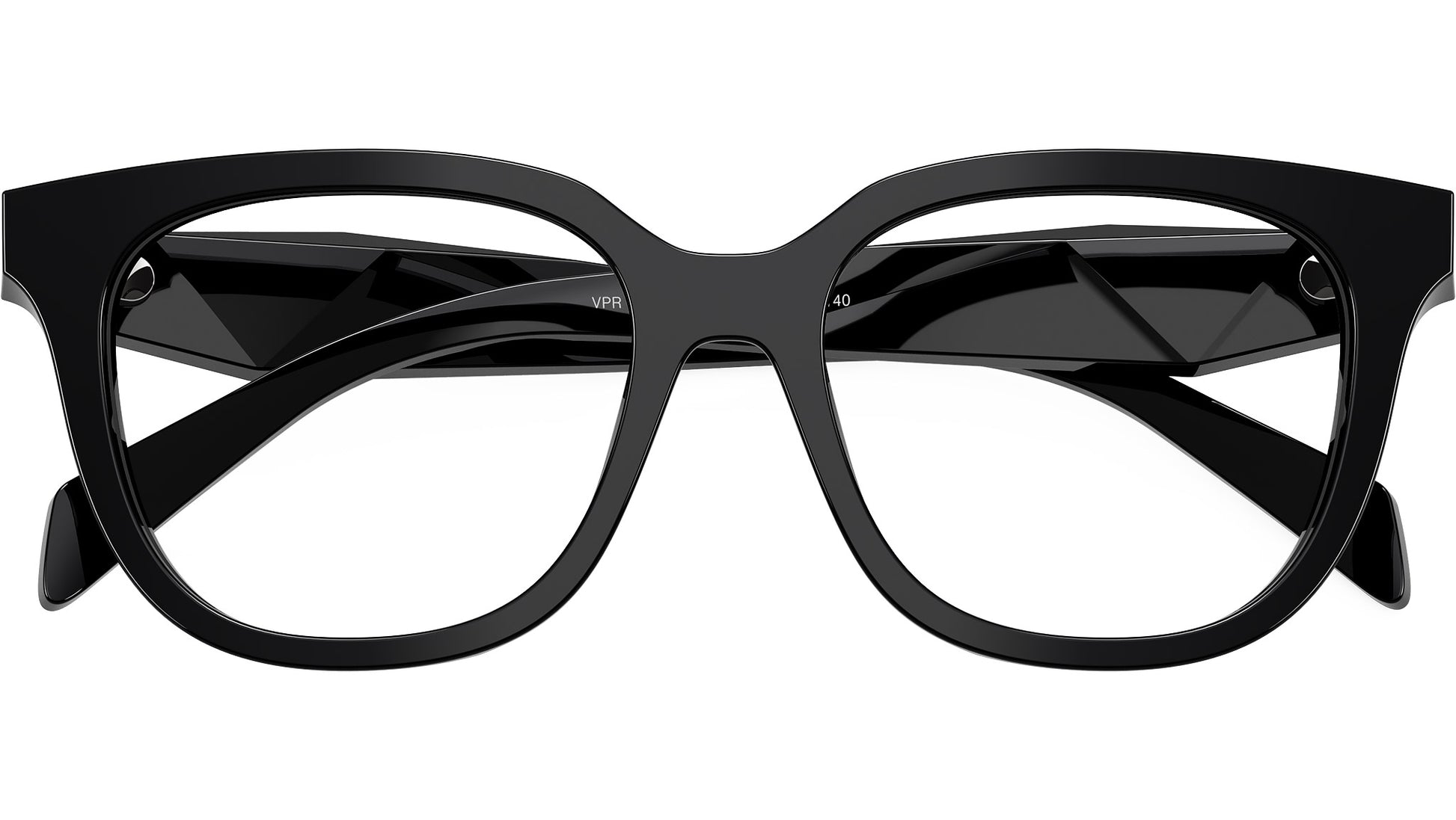 Gafas Prada PR C11V 16K1O1 para mujer, con montura de acetato negro con diseño de mariposa y lentes de muestra. Puente alto. Línea de la marca: Design. Código de estilo: PRC11V. Código de color: 16K1O1. Hechas en Italia. Distribuidor autorizado en línea de Prada. Sus gafas incluyen el estuche y los accesorios originales, y cuentan con una garantía global de 12 meses.