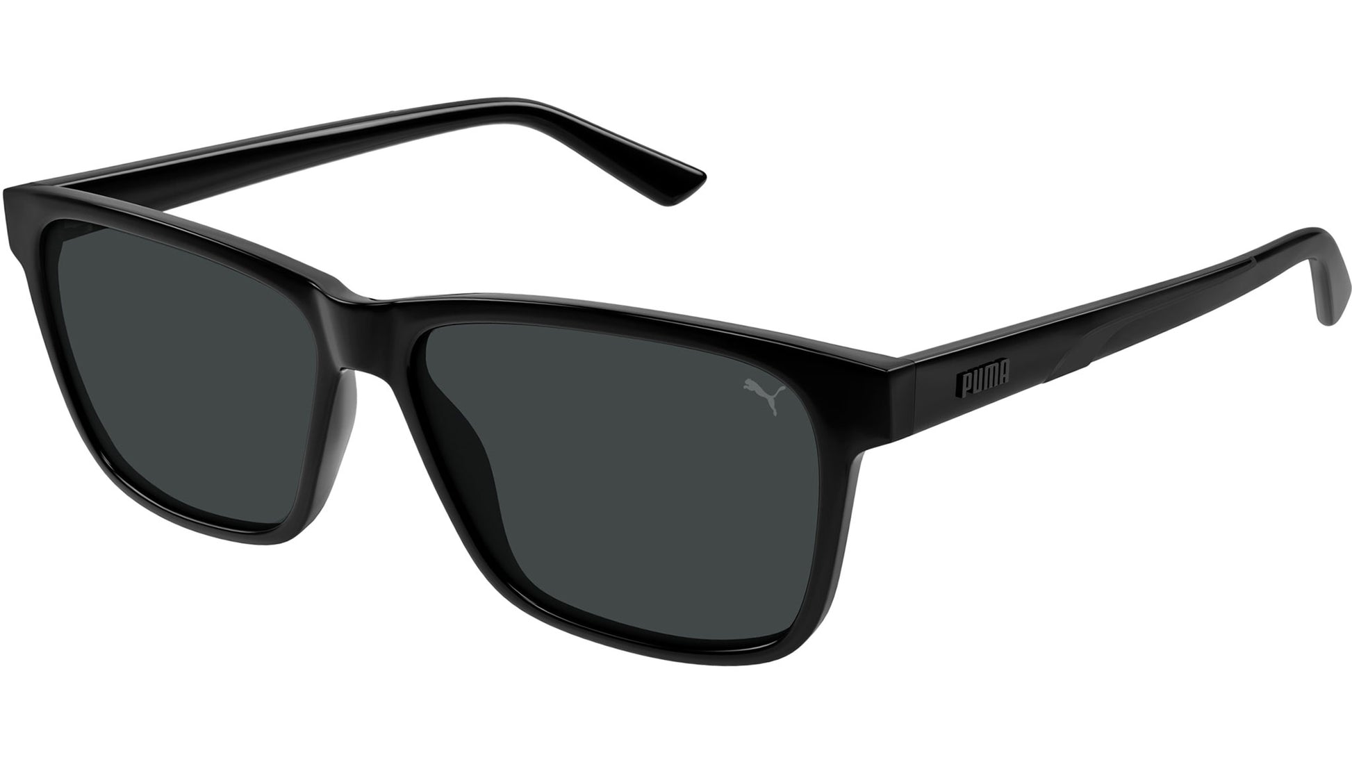 Gafas de sol Puma Essential line modelo PU0467S, montura rectangular inyectada, código de color 001 con frente negro brillante con patillas negras y lentes color humo liso. Distribuidor autorizado online de Puma. Tus gafas se entregarán con el estuche y los accesorios originales y estarán cubiertas por una garantía global de 12 meses.