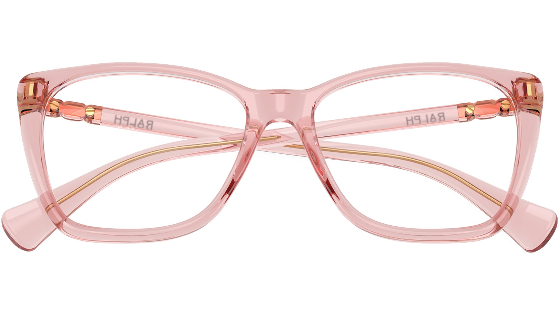 Ralph RA7177U 5801 glasses, featuring shiny blush crystal butterfly injection frame and demo lenses. Universal fit. Brand line: Glamour. Style code: 0RA7177U. Color code: 5801. Authorized Ralph online reseller. Your glasses will include the original case and accessories and are covered by a 12-month global warranty.
