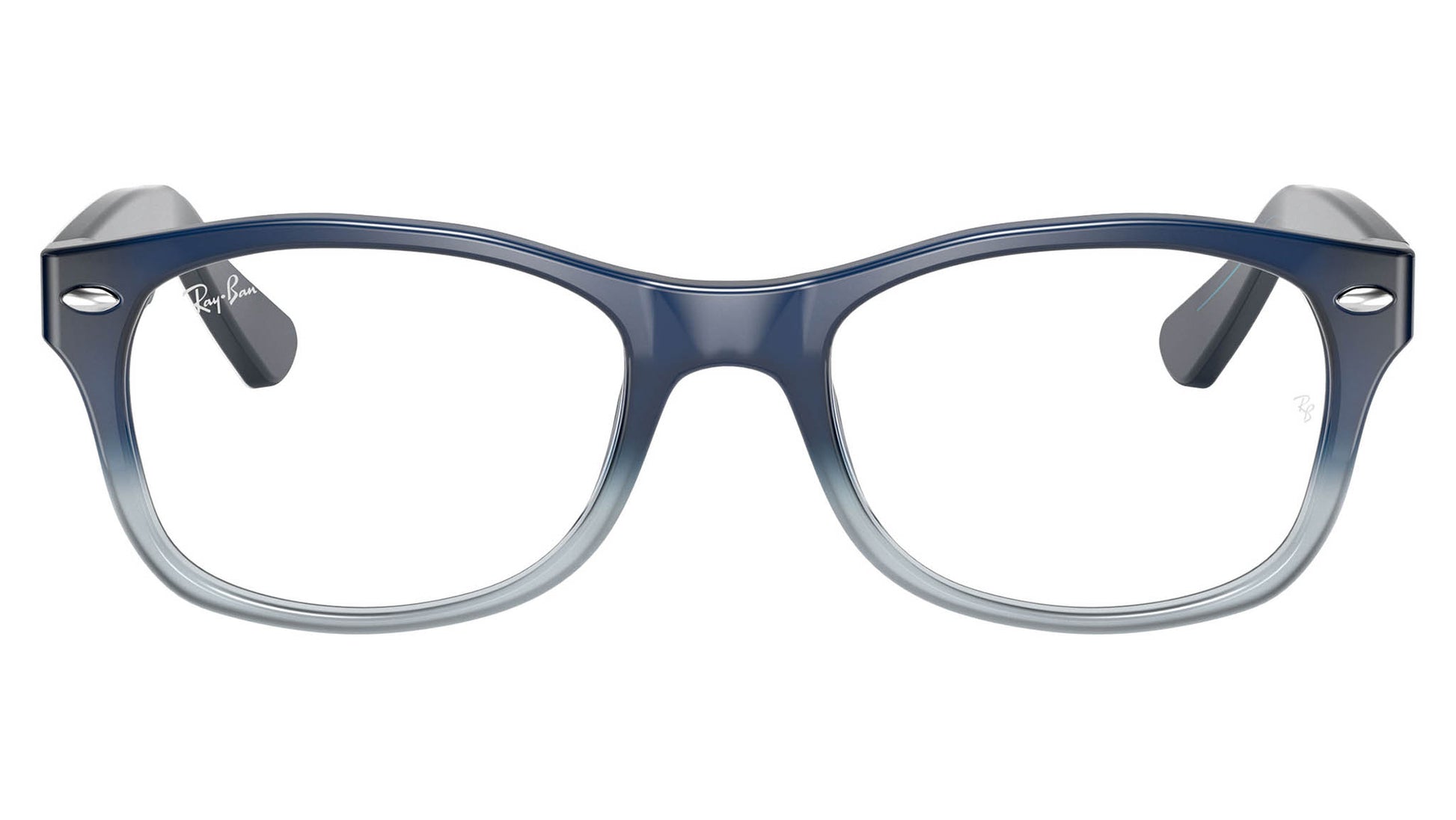 Anteojos Ray-Ban Kids RY1528 de acetato azul ópalo degradado azul ópalo, código de color 3581. Montura cuadrada de montura completa con lentes de demostración. Distribuidor autorizado de Ray-Ban. Incluye estuche original.