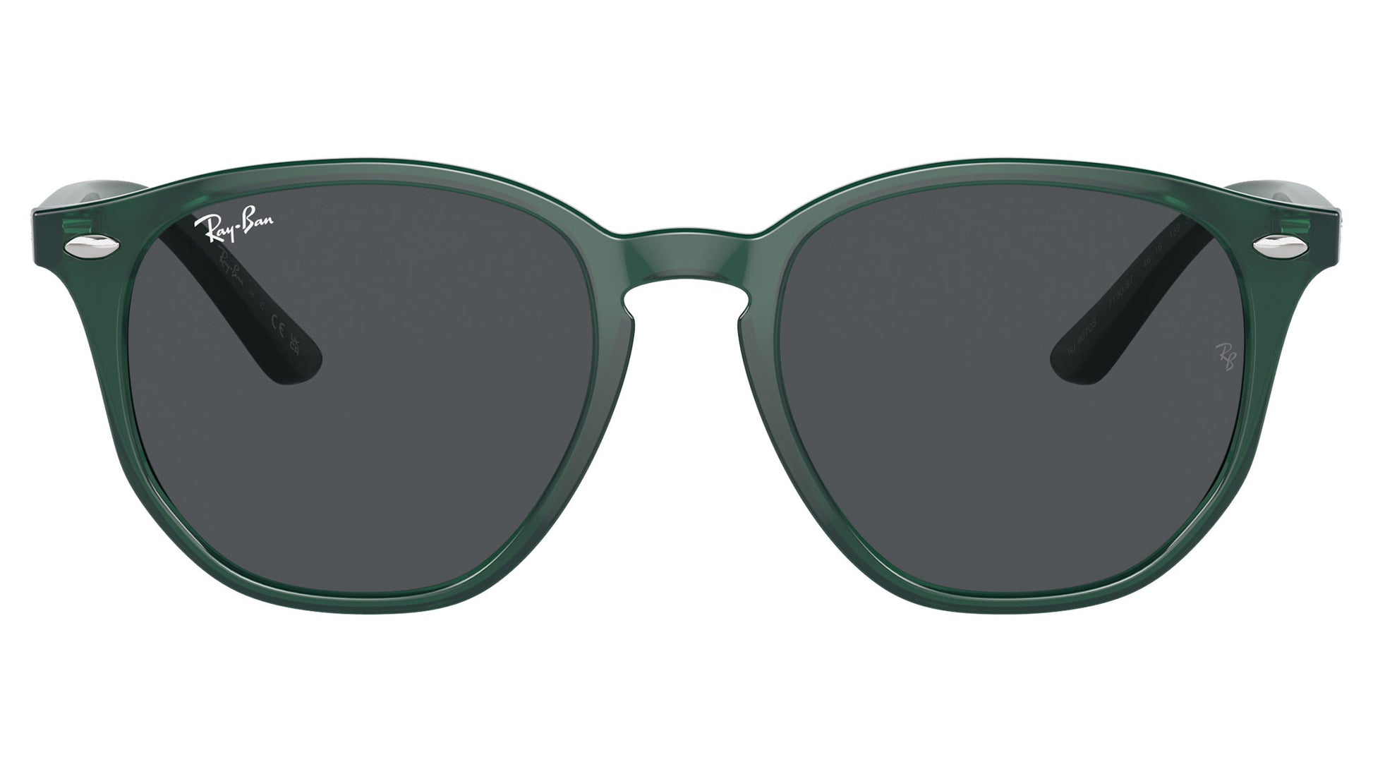 Gafas de sol Ray-Ban modelo RJ9070S, código de color 713087, con montura de inyección de borde completo en verde ópalo y lentes de policarbonato de color gris oscuro. Incluye estuche original. Distribuidor autorizado de Ray-Ban.