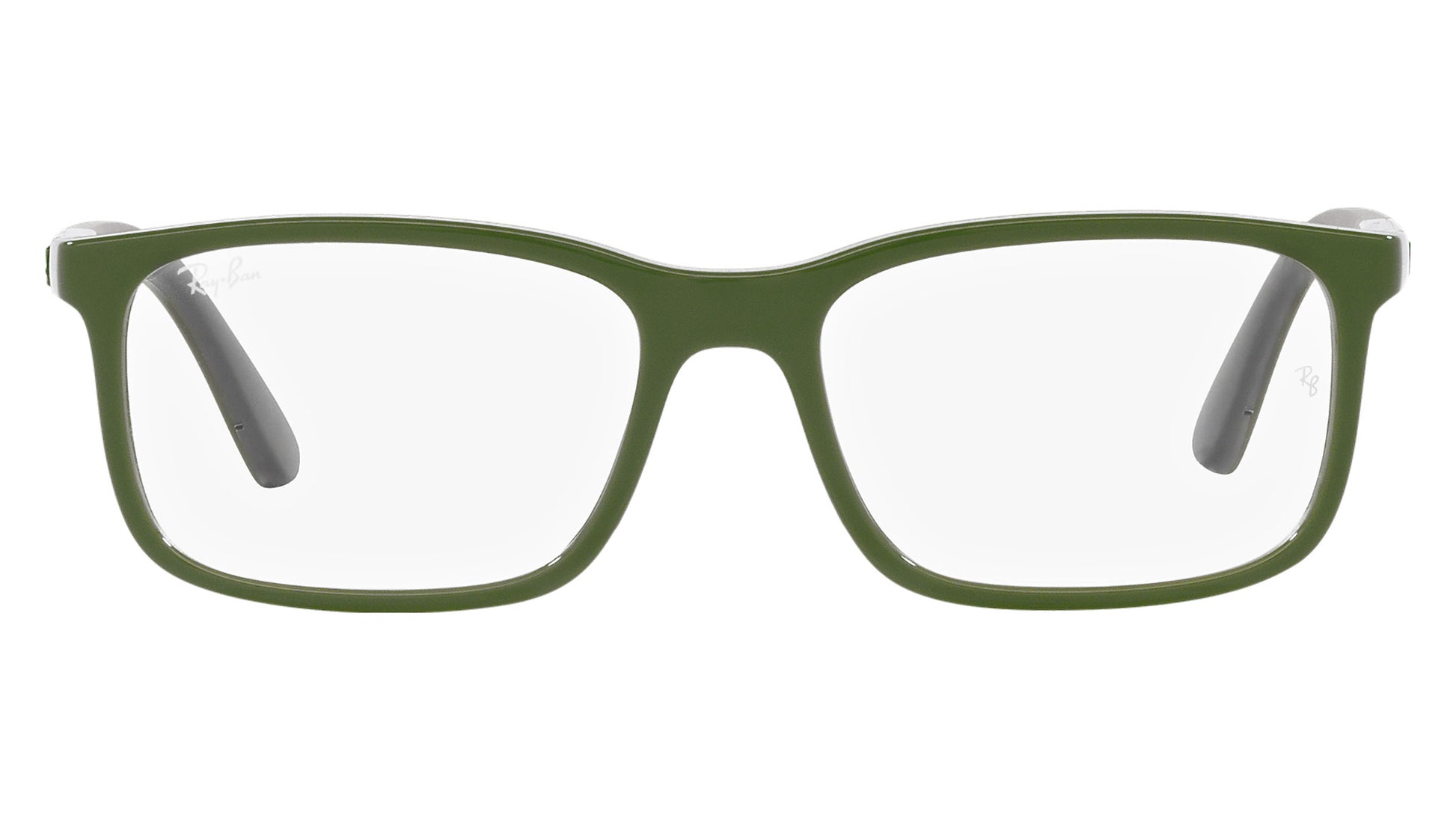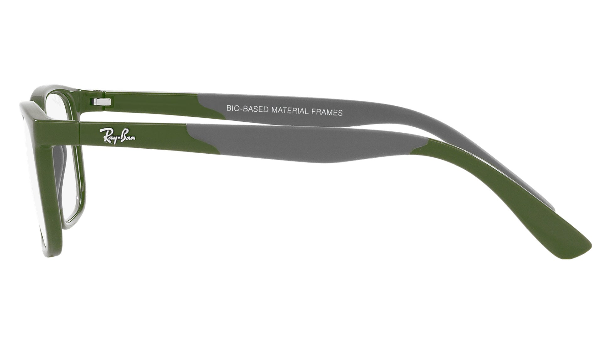 Anteojos de inyección Ray-Ban Kids RY1621 en verde sobre gris, código de color 3932. Montura rectangular unisex de montura completa con ajuste de puente alto y lentes de demostración. Distribuidor autorizado de Ray-Ban. Incluye estuche original.