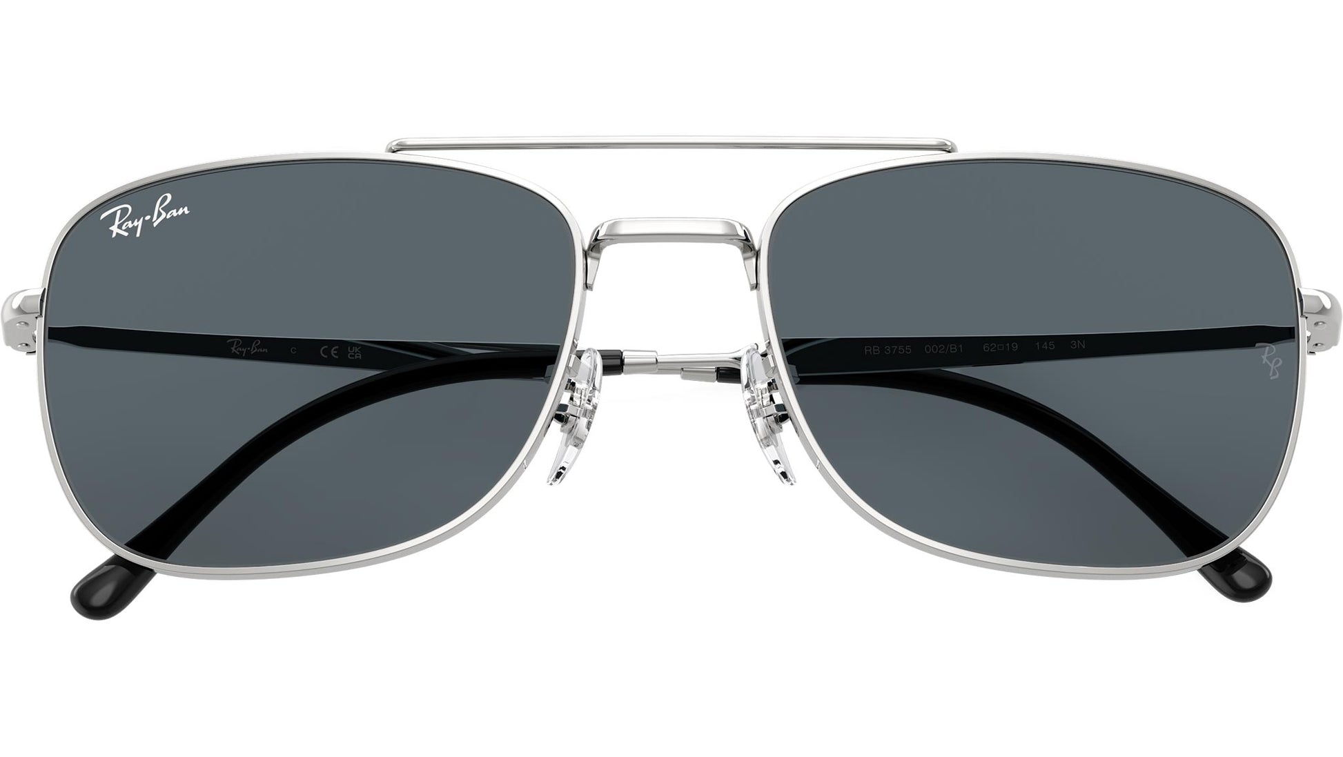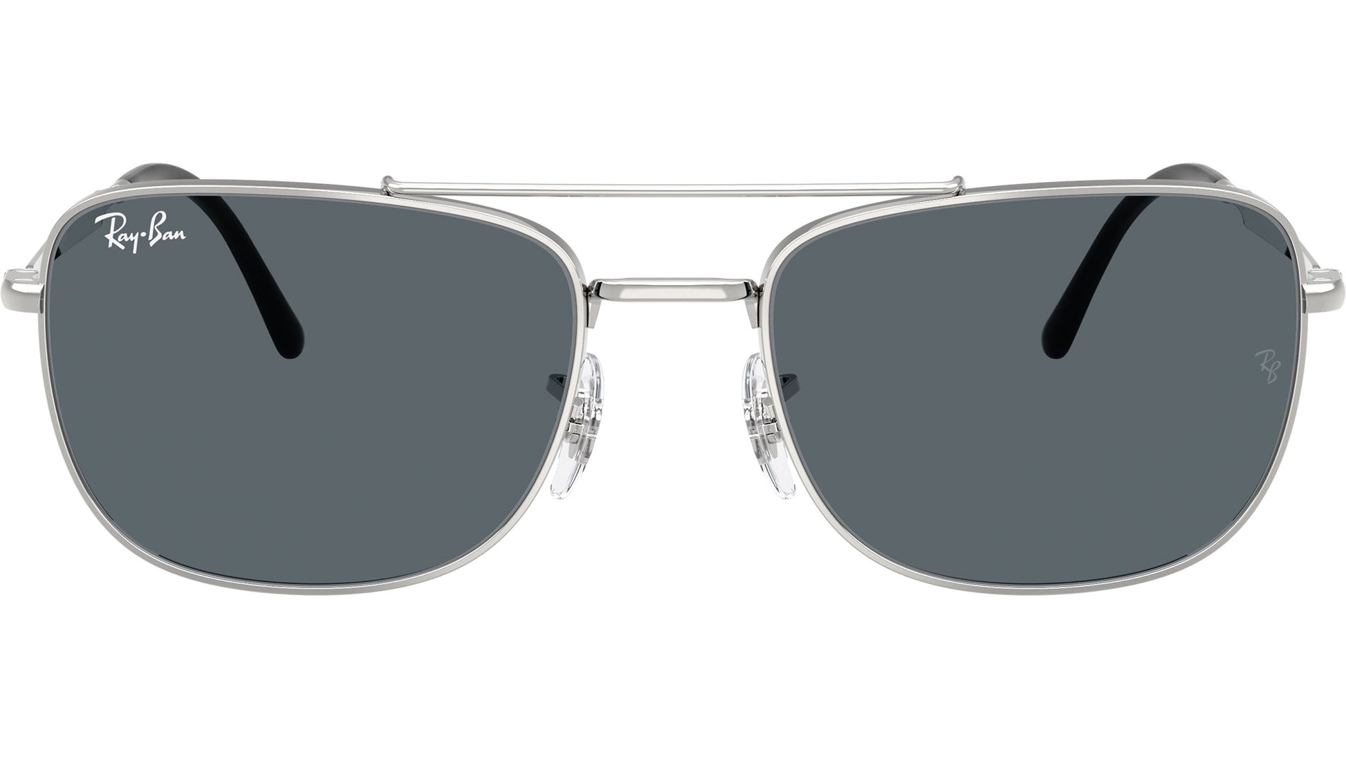 Gafas de sol Ray-Ban RB3755 003/R5 para hombre y mujer, con montura metálica rectangular plateada y lentes de cristal azul. Plaquetas ajustables. Línea: Core. Código de estilo: 0RB3755. Código de color: 003/R5. Distribuidor autorizado en línea de Ray-Ban. Sus gafas incluyen el estuche y los accesorios originales, y cuentan con una garantía global de 12 meses.