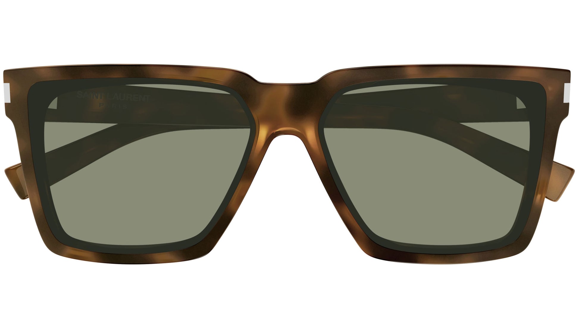 Gafas de sol Saint Laurent modelo SL 610 de la línea de gafas New Wave, código de color 003 acetato reciclado habana medio brillante, forma de montura rectangular con lentes de color verde sólido.