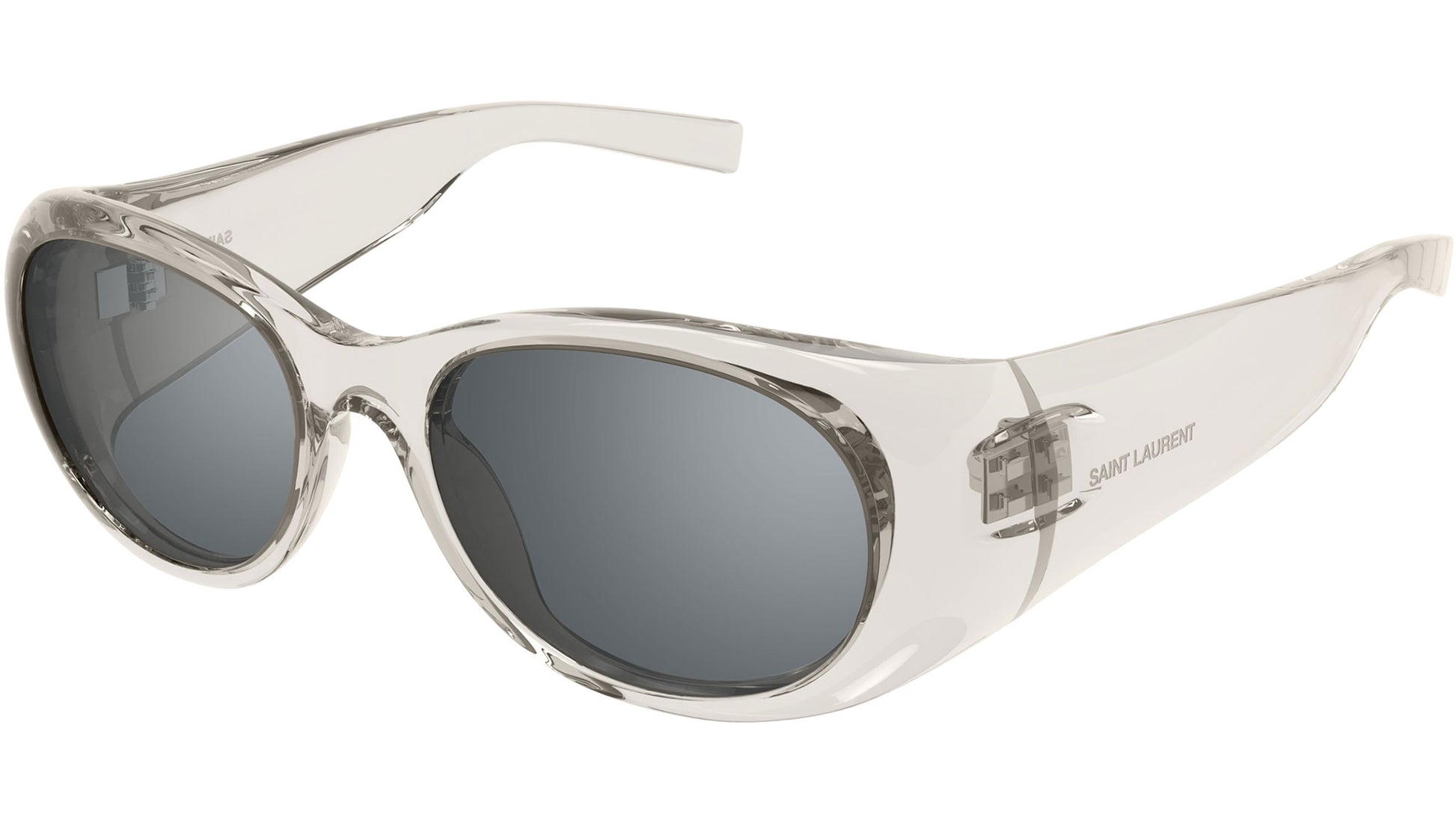 Gafas de sol Saint Laurent SL 736 004 para mujer, con montura de inyección panthos color crema transparente brillante y lentes de nailon bio en gris sólido y plateado espejado. Línea de la marca: SL Logo. Código de estilo: SL 736. Código de color: 004. Hechas en Italia. Distribuidor autorizado en línea de Saint Laurent. Sus gafas incluyen el estuche y los accesorios originales, y cuentan con una garantía global de 12 meses.
