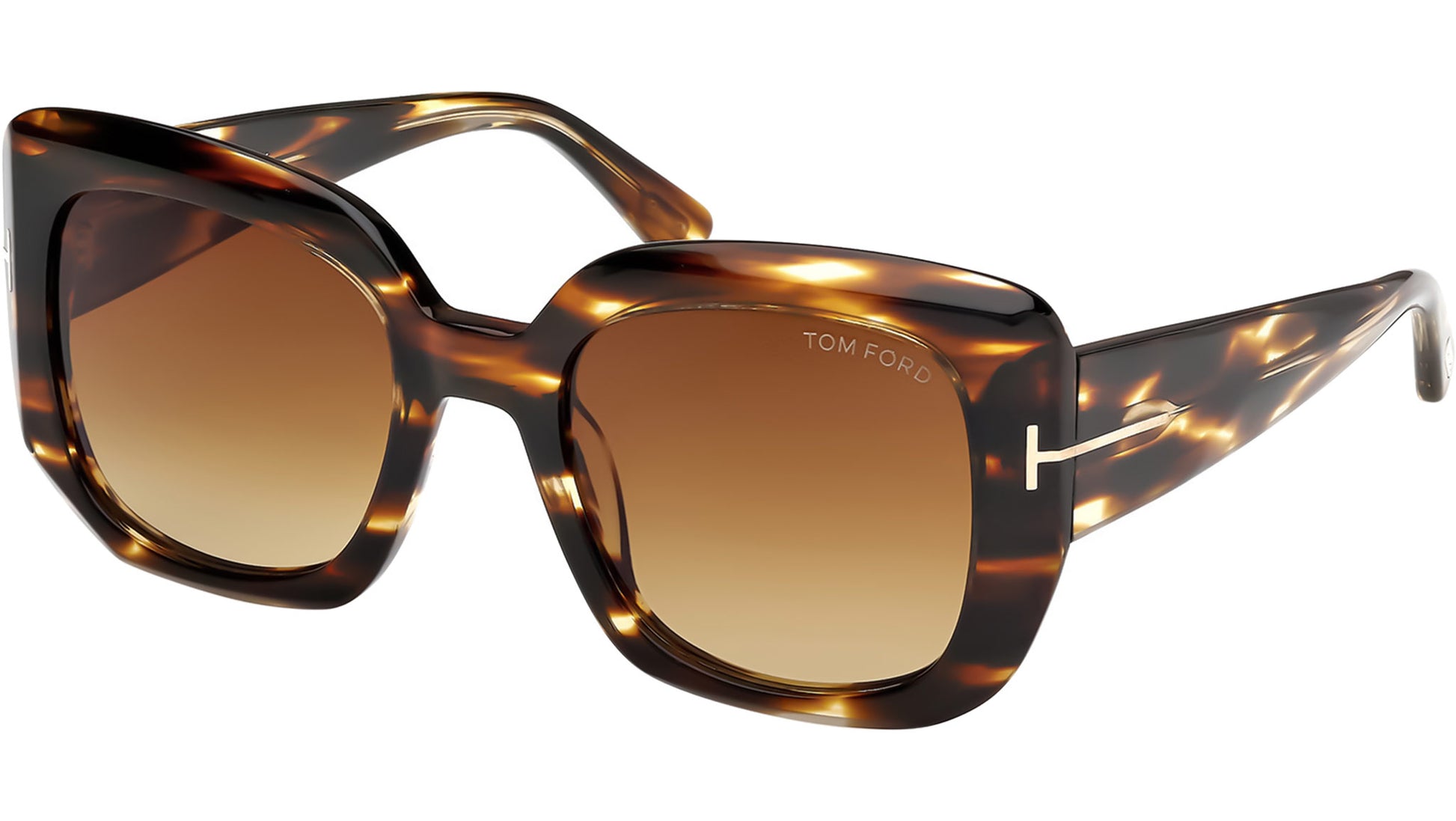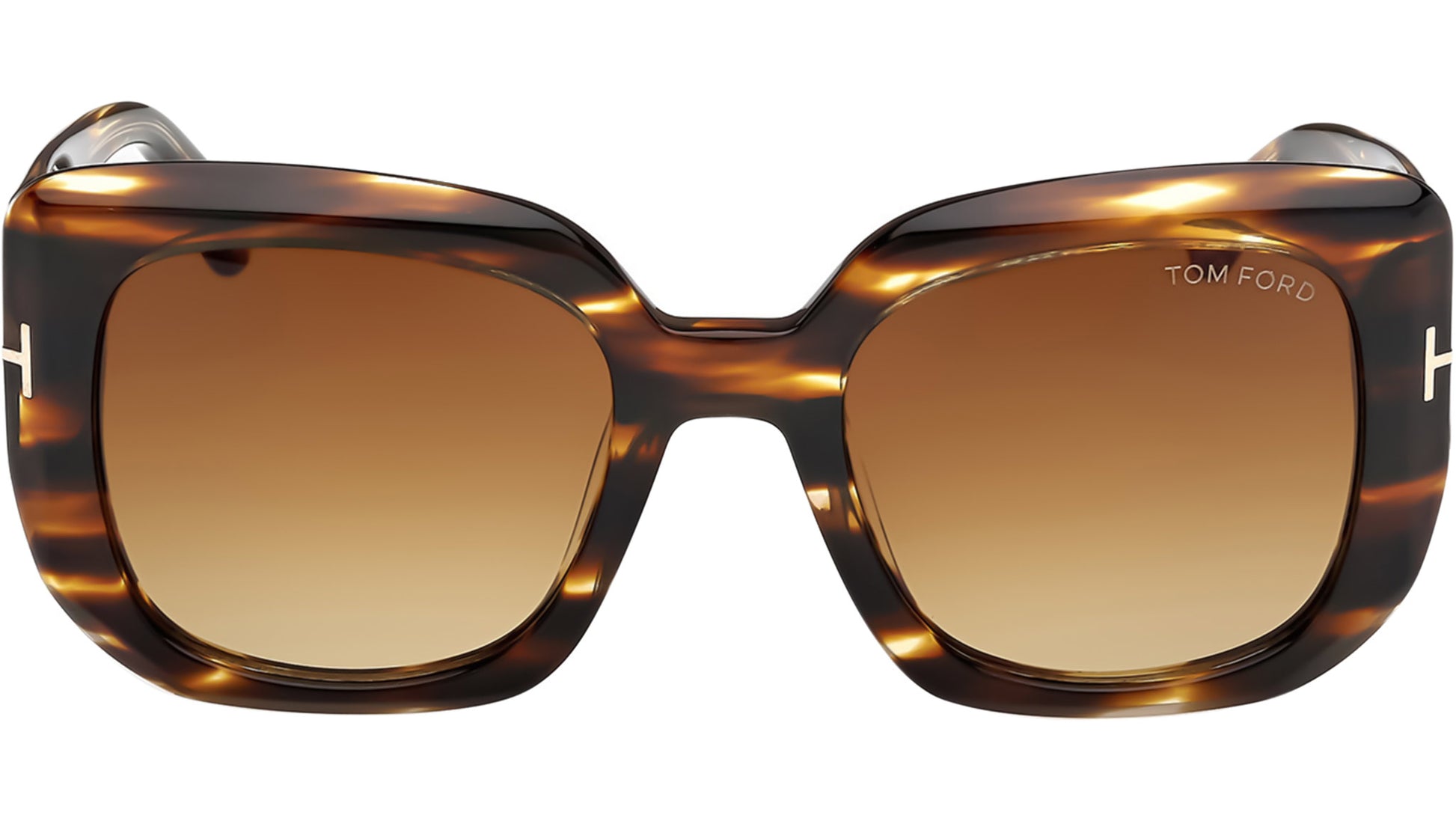 Gafas de sol Tom Ford para mujer modelo FT1220 con montura de acetato color havana oscuro y cristales marrones. Código de marca: 1220. Código de color: 55F. Distribuidor online autorizado de Tom Ford. Tus gafas incluirán el estuche y los accesorios originales y estarán cubiertas por una garantía global de 12 meses.