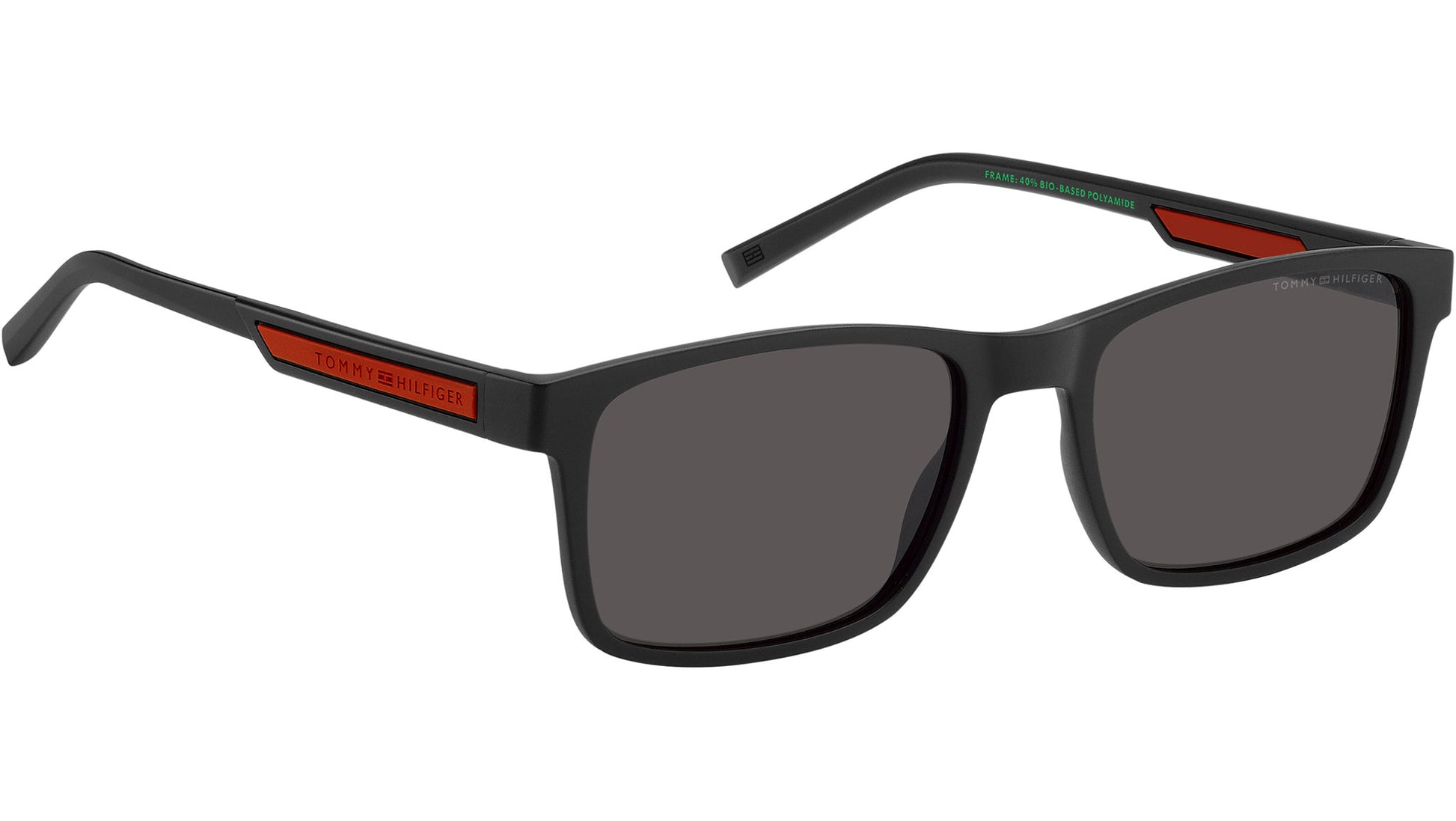 Gafas de sol Tommy Hilfiger TH 2089/S 003 IR con montura rectangular de poliamida ecológica en negro mate y lentes grises. Estas gafas de sol Tommy Hilfiger tienen un estilo deportivo y un espíritu más sostenible. Pero el elemento que las define se encuentra en las patillas: la inserción de caucho de origen biológico en un tono de contraste es un homenaje a los Juegos Olímpicos de 2024. La estructura es de poliamida de origen biológico, fabricada parcialmente a partir de recursos renovables, en particular semillas de ricino. Las bisagras flexibles garantizan un ajuste perfecto y las lentes de sol polarizadas con clip se fijan a la montura de forma rápida y sencilla. Disponibles en versiones con lentes de alto contraste, para un look innegablemente deportivo. Línea de la marca: Sporty. Código de estilo: 206920. Código de color: 003 IR. Distribuidor online autorizado de Tommy Hilfiger. Sus gafas incluyen el estuche y los accesorios originales, y están cubiertas por una garantía global de 12 meses.