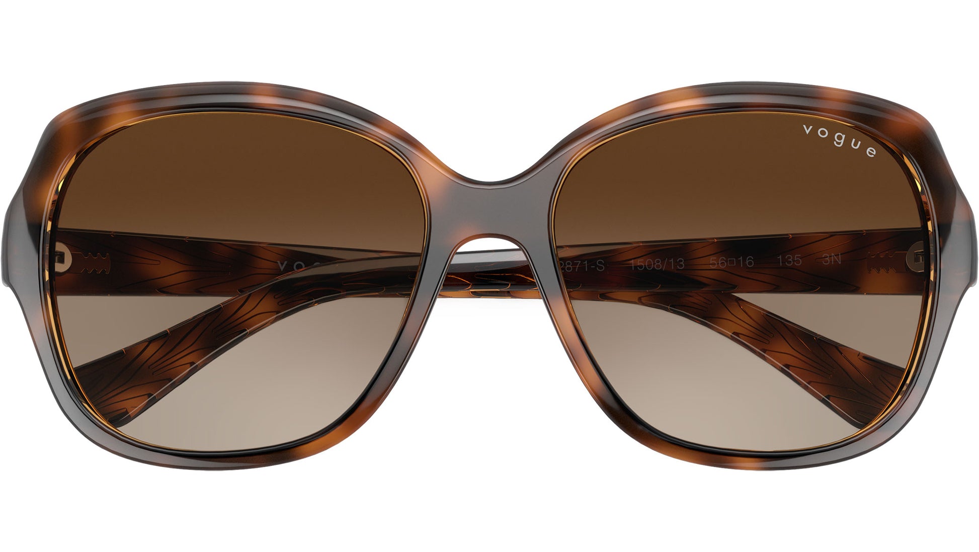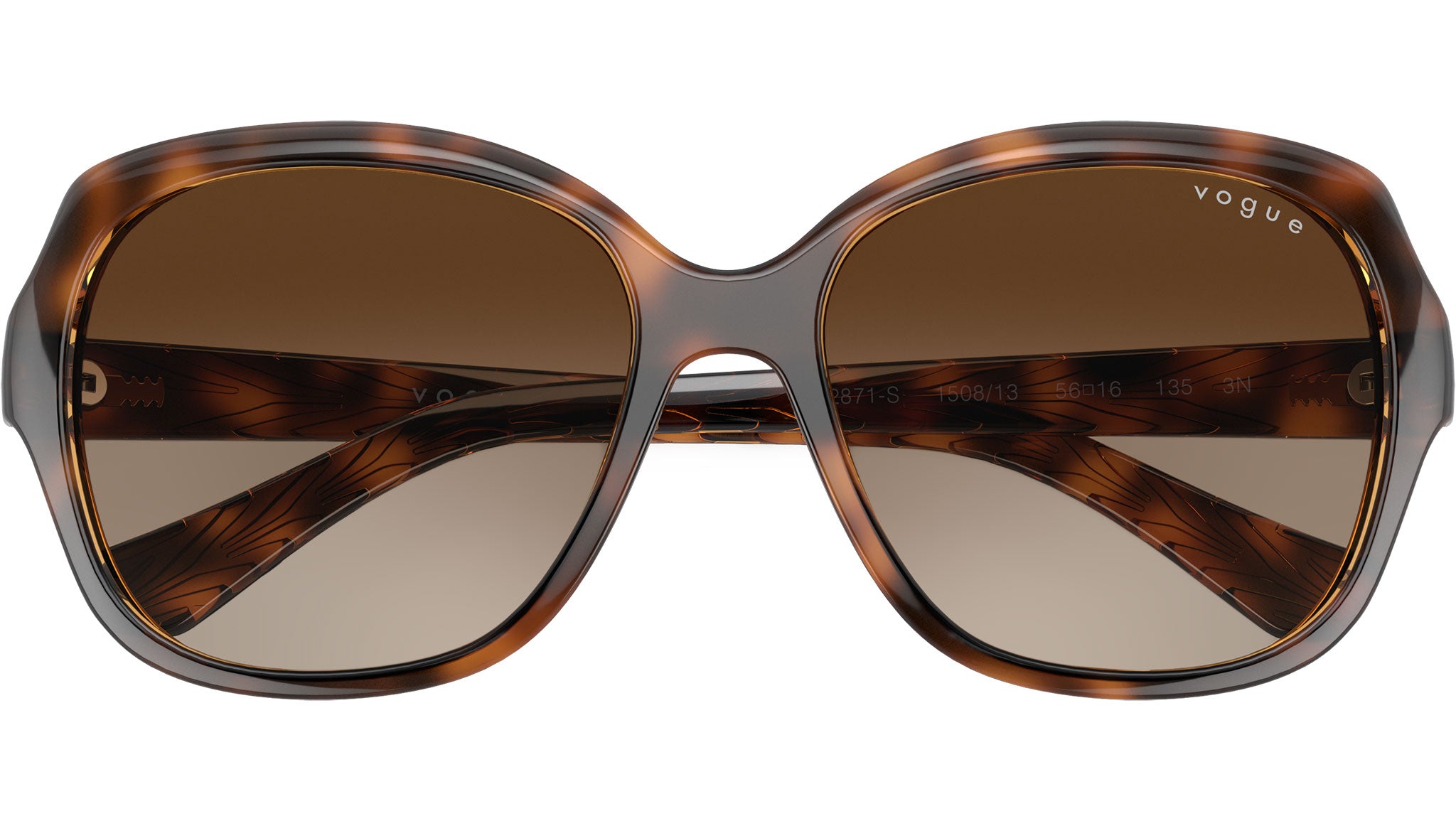 Gafas de sol Vogue para mujer, modelo VO2871S 150813, con montura de acetato habana oscuro a rayas y lentes CR-39 de base descentrada 6 en degradado marrón. Puente alto. Línea de montura: Casual Chic. Código de marca: 0VO2871S. Código de color: 150813. Distribuidor autorizado en línea de Vogue Eyewear. Sus gafas incluyen el estuche y los accesorios originales, y cuentan con una garantía global de 12 meses.