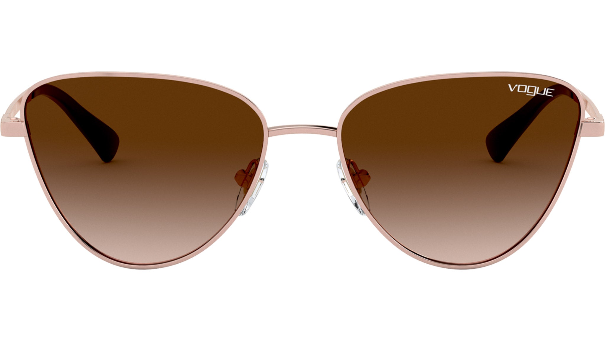 Gafas de sol Vogue para mujer, modelo VO4145SB 507513, con montura de metal en oro rosa y base marrón degradada. 4 lentes CR-39. Código de marca: 0VO4145SB. Código de color: 507513. Distribuidor autorizado en línea de Vogue Eyewear. Sus gafas incluyen el estuche y los accesorios originales, y cuentan con una garantía global de 12 meses.
