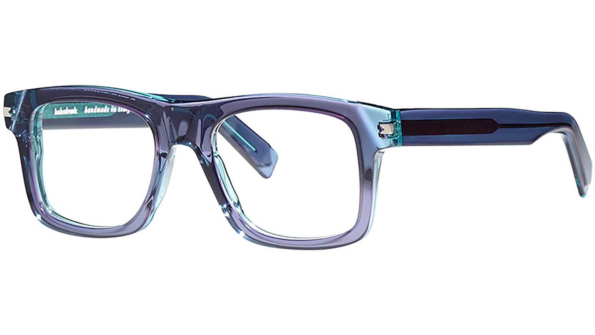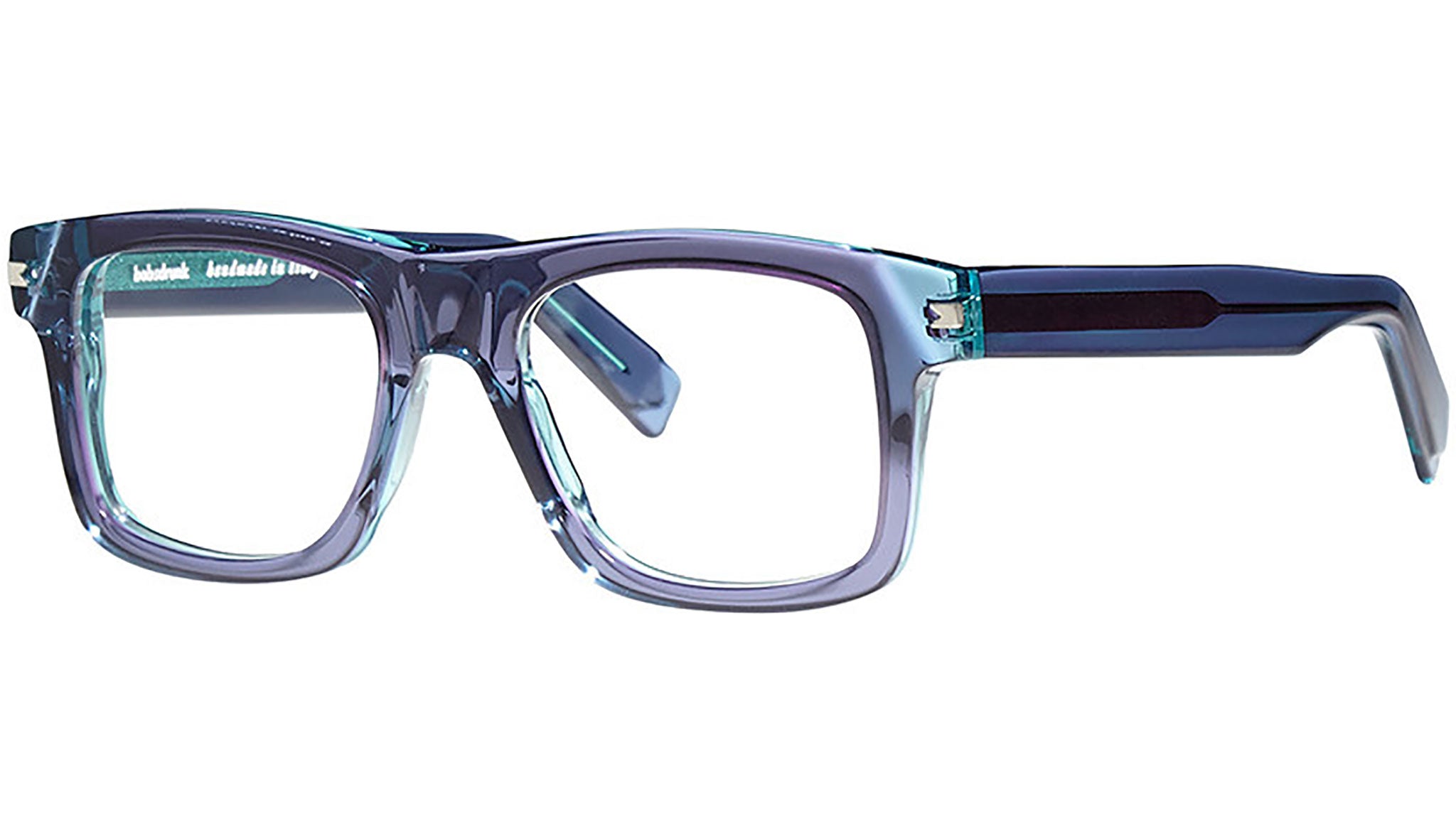 Modelo óptico Bobsdrunk Ivan en la variante de 258 colores, azul / celeste. Productos atemporales y formas atrevidas conviven en esta colección de óptica 2023. Las líneas están magistralmente diseñadas para crear un efecto de “ligereza audaz”. Cada par de gafas se caracteriza por un detalle emblemático mostrado en el frente y en la punta de las patillas, que resalta el valor de la marca. El detalle representa la unión de la letra inicial y final de Bobsdrunk en un solo símbolo. La cuidadosa elección de los materiales, la selección de los acabados y la extensa investigación cromática son prerrogativas de cada creación de Bobsdrunk.