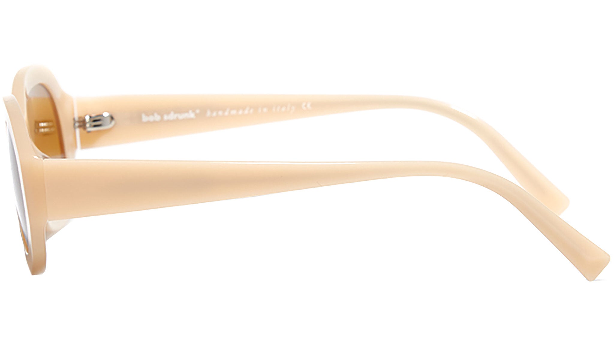 Montura de acetato en color ámbar con lentes grises.