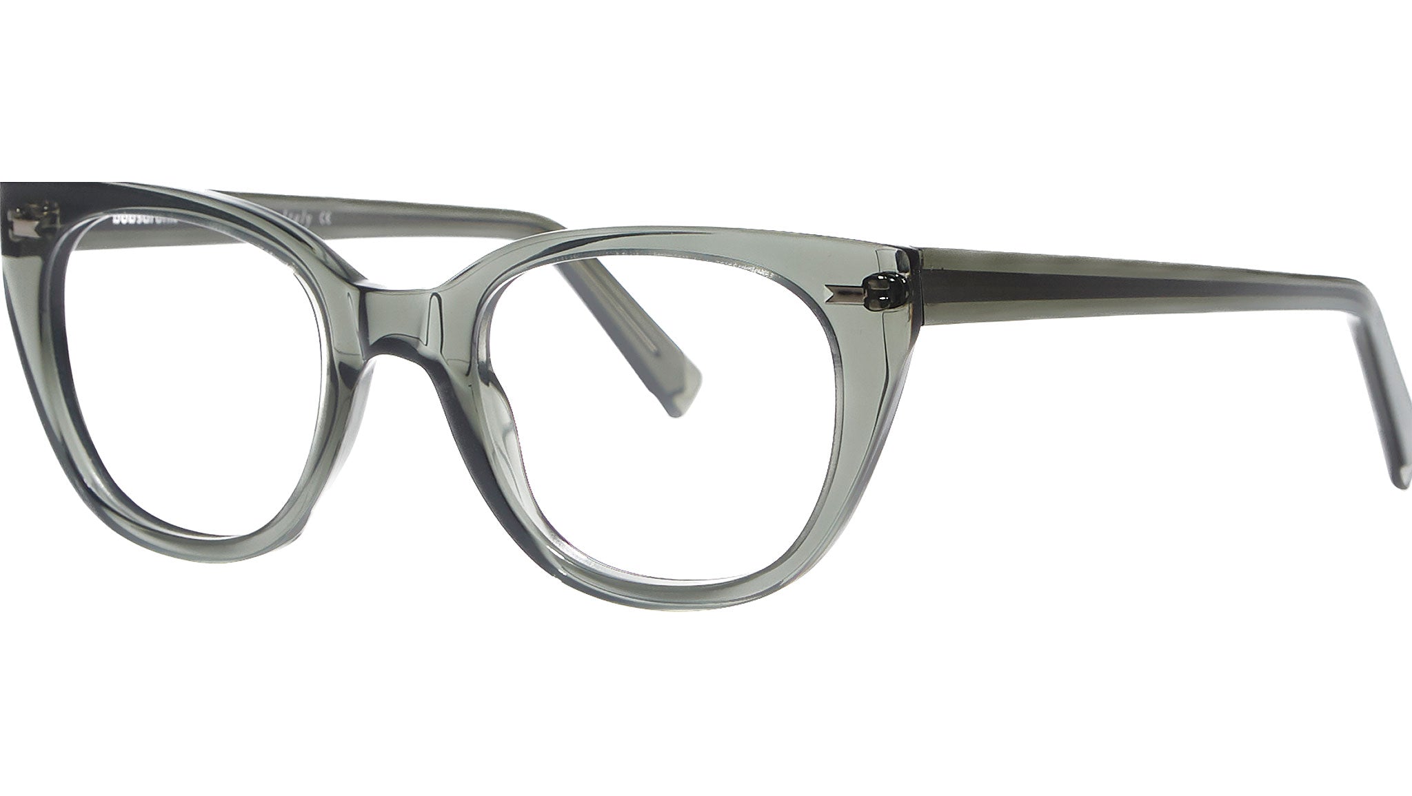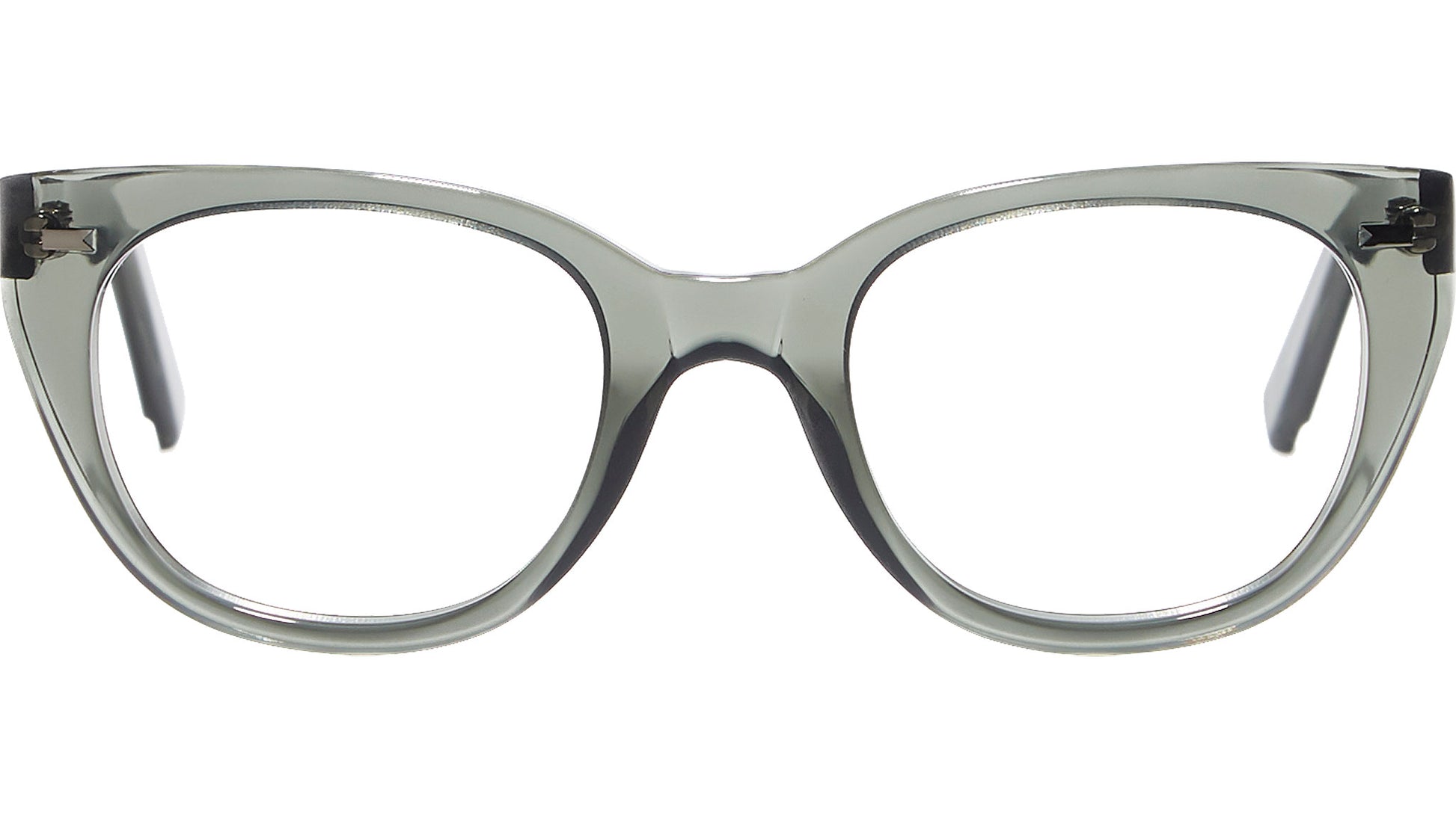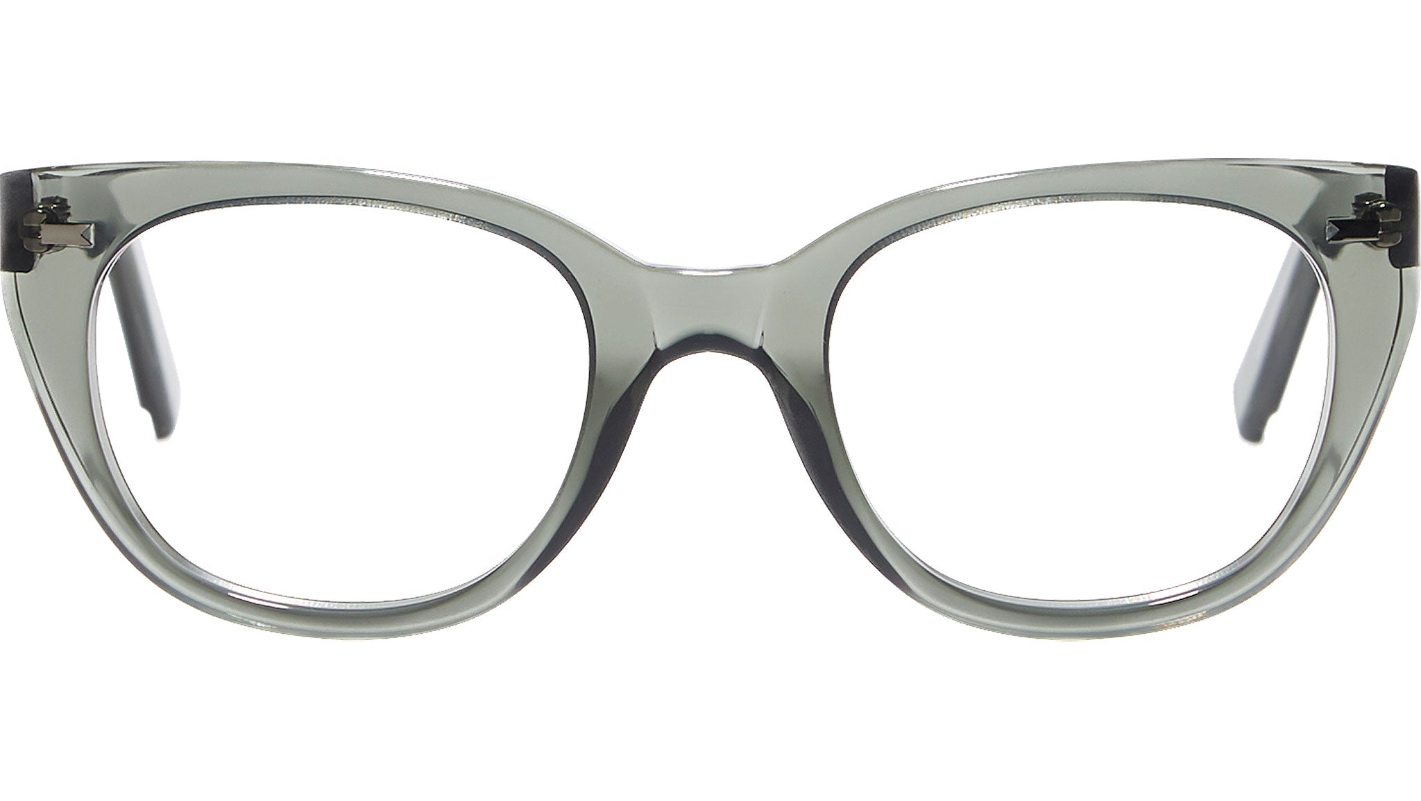 Gafas Bobsdrunk Ilde con montura de acetato transparente verde/gris con diseño de mariposa y lentes de muestra. Marca: Colección Óptica. Código de estilo: IDV1512892148. Código de color: 151. Distribuidor autorizado en línea de Bobsdrunk. Sus gafas incluyen el estuche y los accesorios originales, y cuentan con una garantía global de 12 meses.