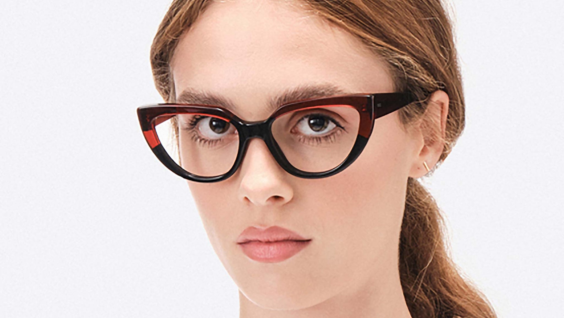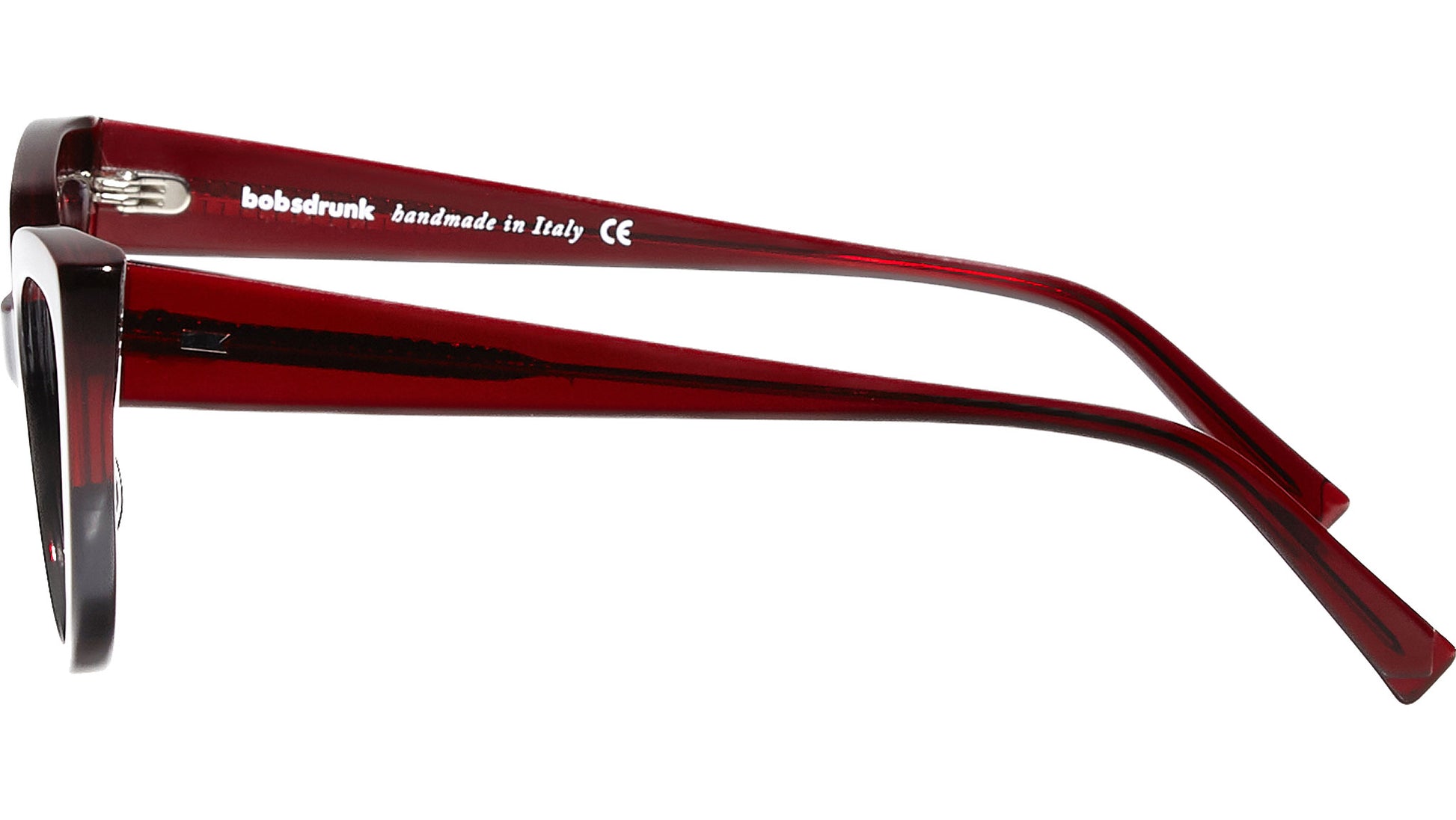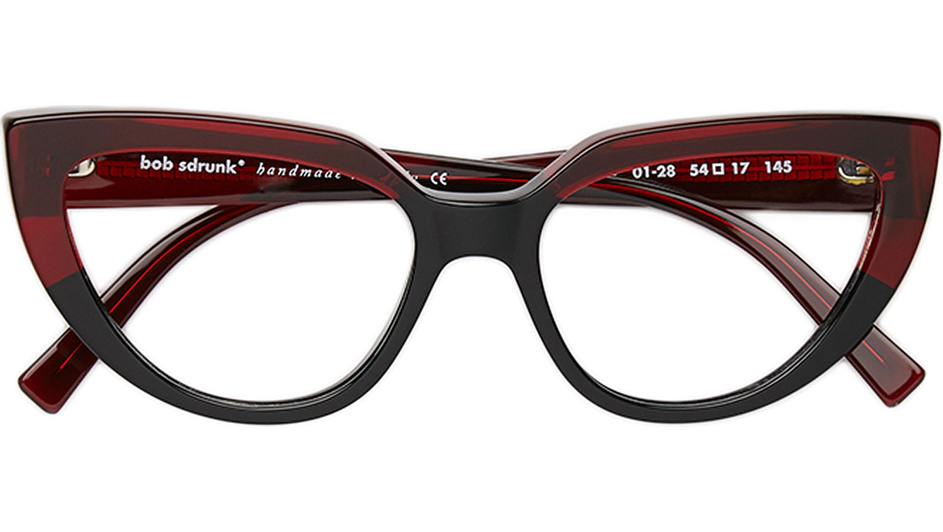 Bobsdrunk Peach glasses featuring black / transparent bordeaux cat eye acetate frame and demo lens. Peach is a modern and refined option featuring a bi-colour acetate front that adds a touch of character to its sleek, slightly squared frame. The design draws inspiration from the classic cat-eye shape, offering a blend of sophistication and style. Brand line: Optical Collection. Style code: PCV128152154. Color code: 01-28. Authorized Bobsdrunk online reseller. Your glasses will include the original case and accessories and are covered by a 12-month global warranty.