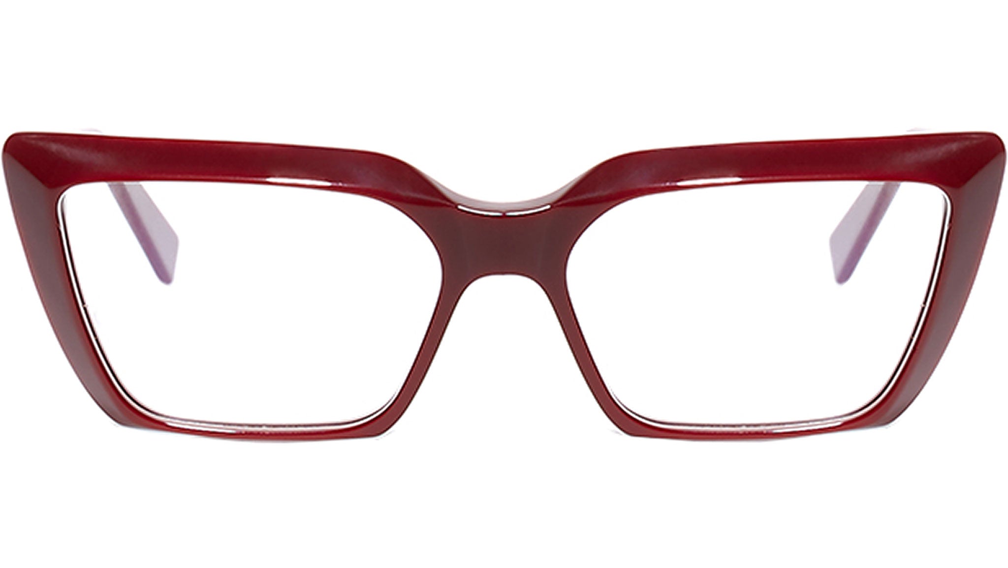 Gafas Bobsdrunk Penny con montura geométrica de acetato color burdeos sólido y lentes de muestra. Línea: Colección Óptica. Código de estilo: PEV14152154. Código de color: 14. Distribuidor autorizado en línea de Bobsdrunk. Sus gafas incluyen el estuche y los accesorios originales, y cuentan con una garantía global de 12 meses.