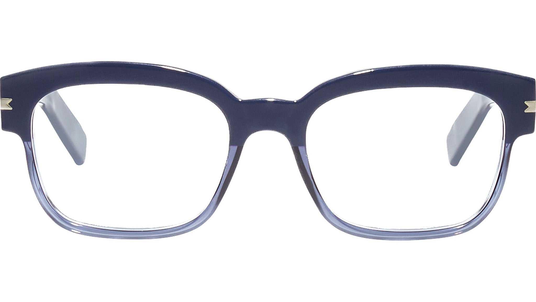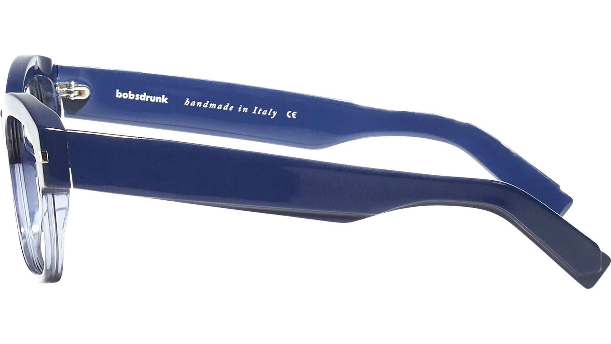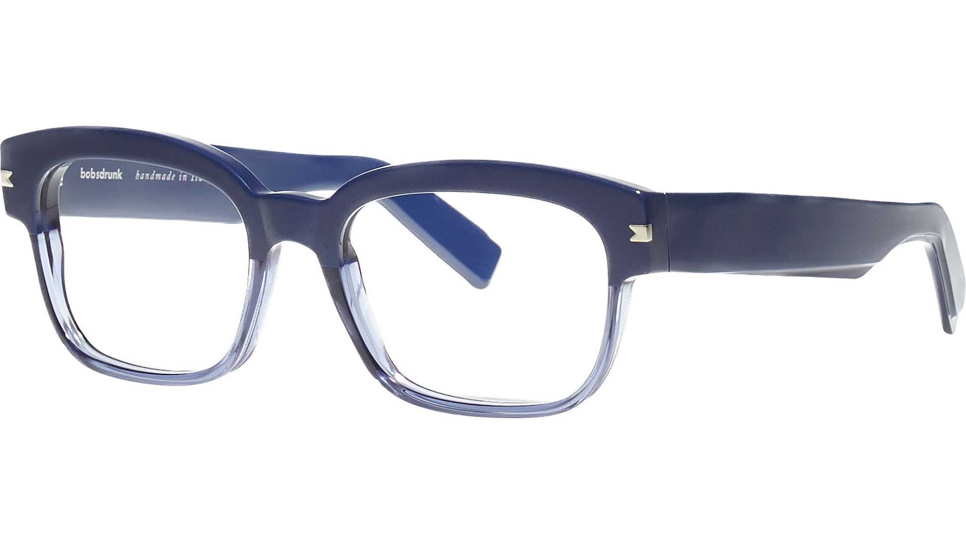 Bobsdrunk Ridge glasses featuring solid navy blue / transparent blue squared acetate frame and demo lens. Ridge features classic, smooth lines accentuated by bold acetate, creating a harmonious blend of shapes and materials. This combination makes the frame an ideal choice for individuals who value a timeless style infused with a confident flair. Brand line: Optical Collection. Style code: RDV1132892156. Color code: 113. Authorized Bobsdrunk online reseller. Your glasses will include the original case and accessories and are covered by a 12-month global warranty.