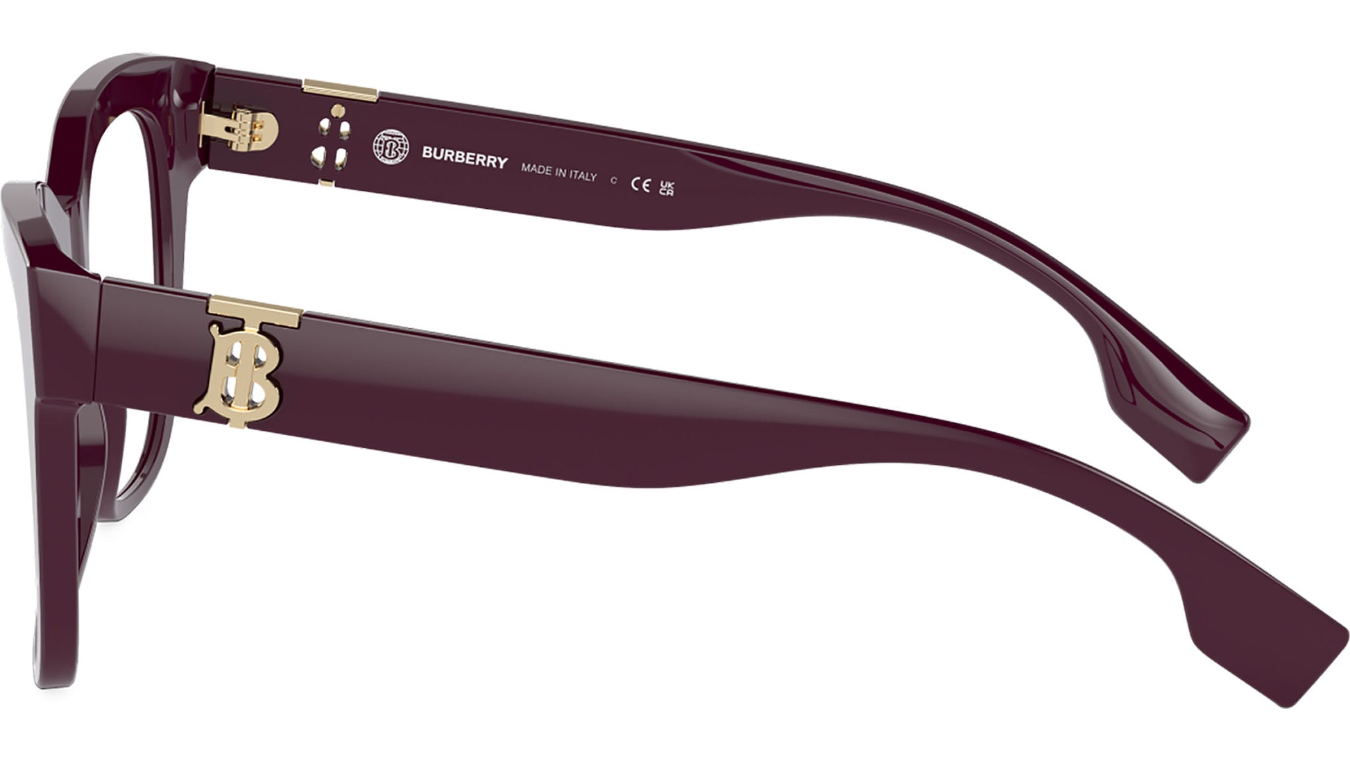 Anteojos Burberry para mujer modelo 2388 con montura de acetato de borde completo en color burdeos y lentes de demostración de base 4 curvas. Ajuste de puente alto. Línea de fotograma: Tb Evolution. Código de marca: BE2388. Código de color: 3979. Distribuidor online autorizado de Burberry. Tus gafas vendrán con el estuche y los accesorios originales y estarán cubiertas por una garantía global de 12 meses.