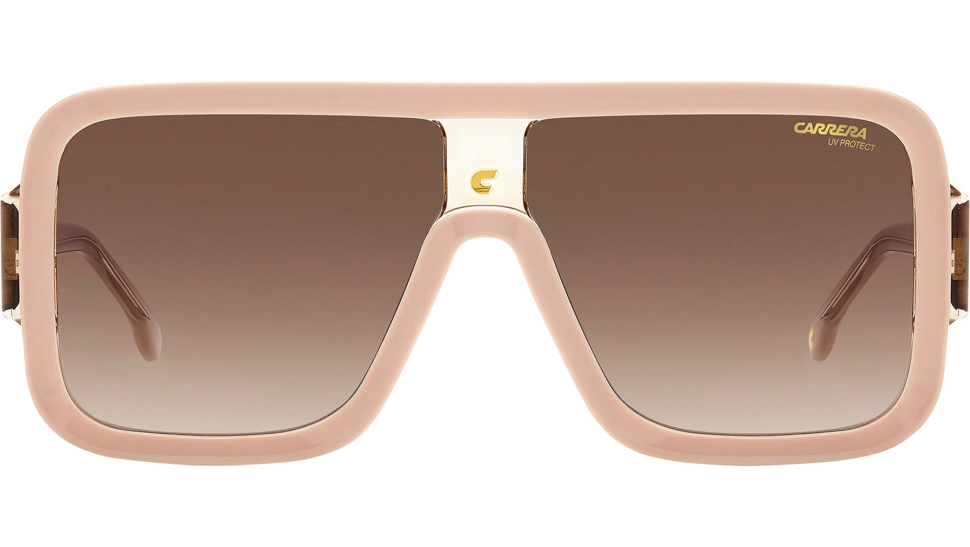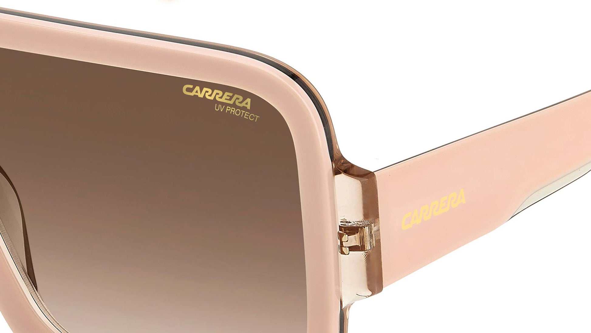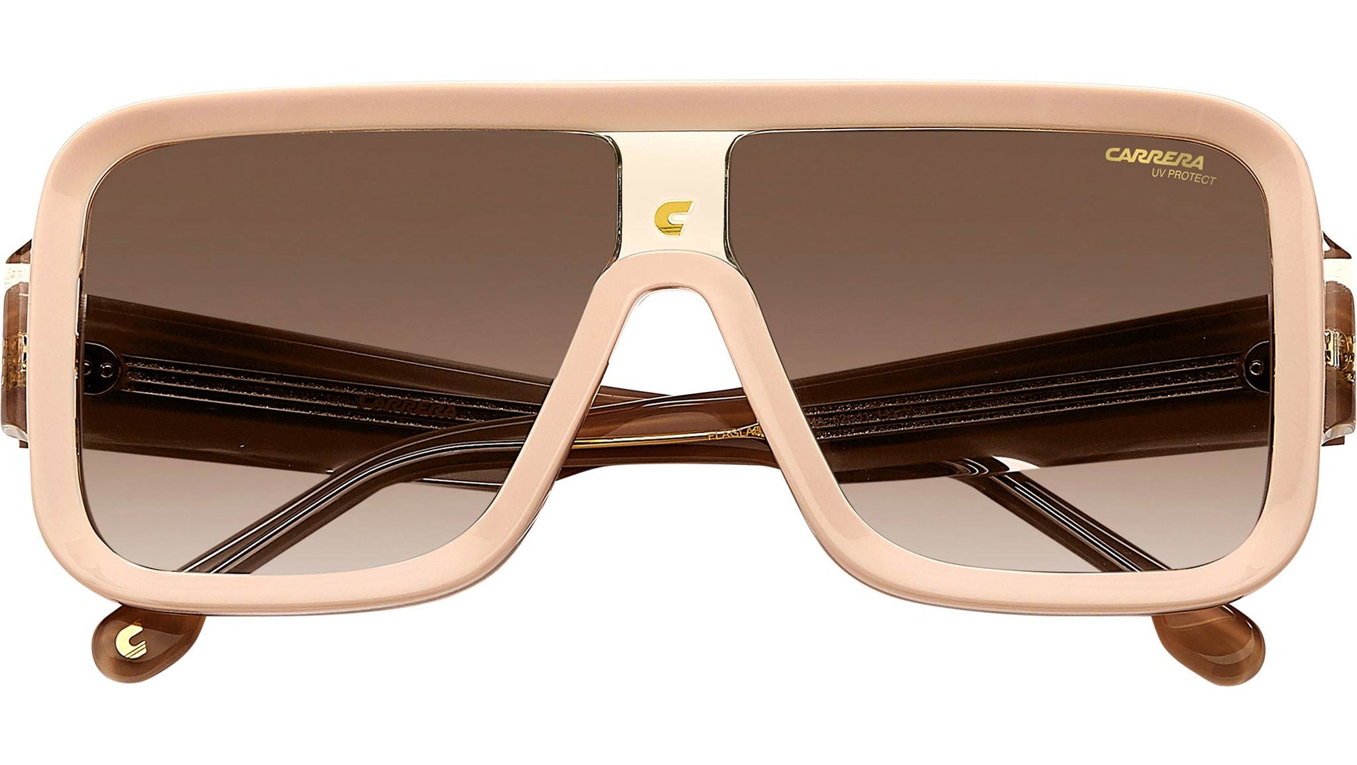 Gafas de sol Carrera modelo Flaglab 14 código de color 10A HA Beige. Estas gafas de sol Carrera forman parte de una colección cápsula especial dedicada a los festivales de música. La llamativa forma, con atrevidos perfiles de acetato, lentes iridiscentes y una 'C' de Carrera en el puente, confiere a este modelo un encanto futurista. Las patillas grandes se caracterizan por transparencias yuxtapuestas que dejan ver el núcleo de alambre metálico, mientras muestran con orgullo el logotipo con letras. La inscripción "Festival Edition" dentro de las patillas y en la lente derecha completa este look verdaderamente visionario.