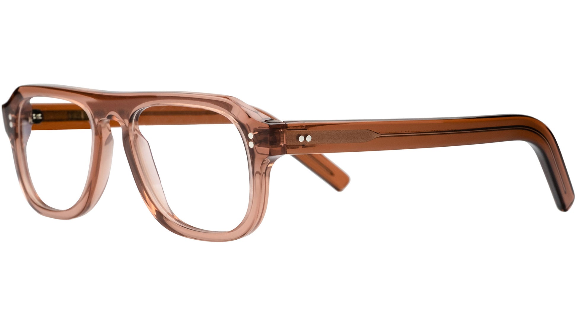 Una montura óptica de aviador icónica y atemporal que presenta un puente plano y patillas redondas clásicas. Hecho a mano en Italia. Bisagras remachadas a mano. Acetato italiano.