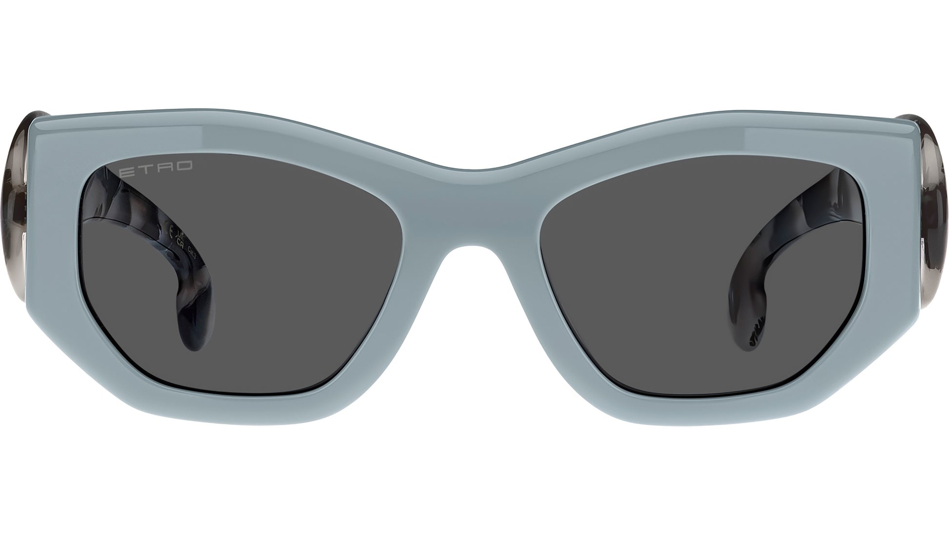 Etro ETROPAISLEY MVU IR sunglasses for women, featuring azure rectangular acetate frame and grey lenses. Brand line: Etromania. Style code: 207324. Color code: MVU IR. Authorized Etro online reseller. Your glasses will include the original case and accessories and are covered by a 12-month global warranty.
