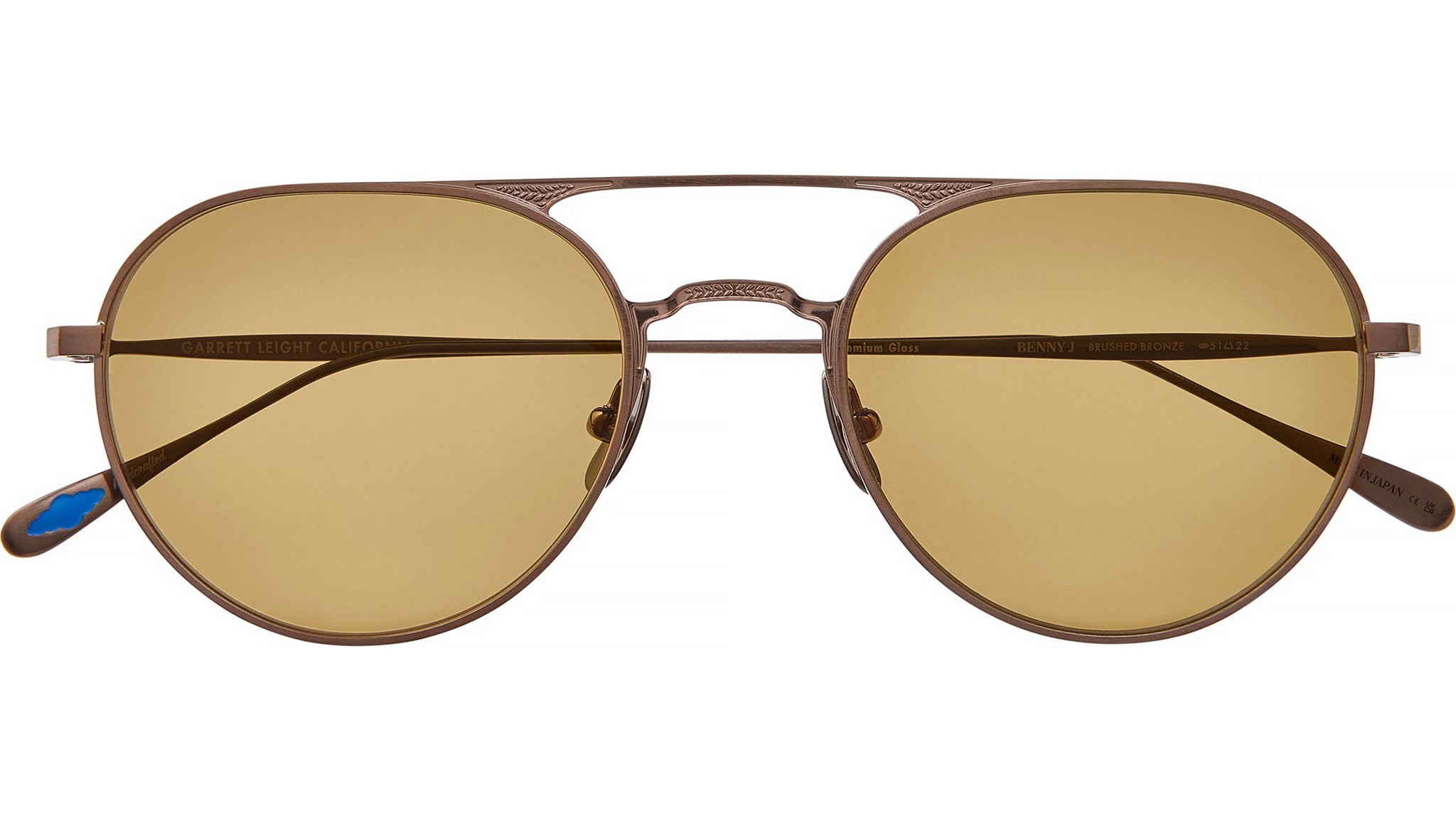 Gafas de sol Garrett Leight Benny J con montura de titanio estilo aviador en bronce cepillado y lentes semiplanas de arce puro. Las gafas de sol Garrett Leight Benny J destacan por su diseño sofisticado y su excepcional artesanía en una montura totalmente de titanio, que fusiona la elegancia moderna con la inspiración vintage. Acabadas a mano en Japón, estas gafas de silueta ligera presentan un puente clásico, barra superior y patillas adornadas con un intrincado grabado de filigrana de helecho para un acabado sutil y distinguido. Equipadas con lentes de cristal semiplanas de alta calidad que ofrecen protección UV del 100%, la montura proporciona claridad y estilo. Parte de la colección Garrett Leight Blue, incluye un estuche rígido exclusivo y una gamuza de limpieza, todo ello presentado en una caja rígida para una experiencia de lujo completa. Marca: GLCO. Código de estilo: 4078. Código de color: BBZ/SFPMP. Distribuidor autorizado online de Garrett Leight. Sus gafas incluirán el estuche y los accesorios originales y están cubiertas por una garantía global de 12 meses.