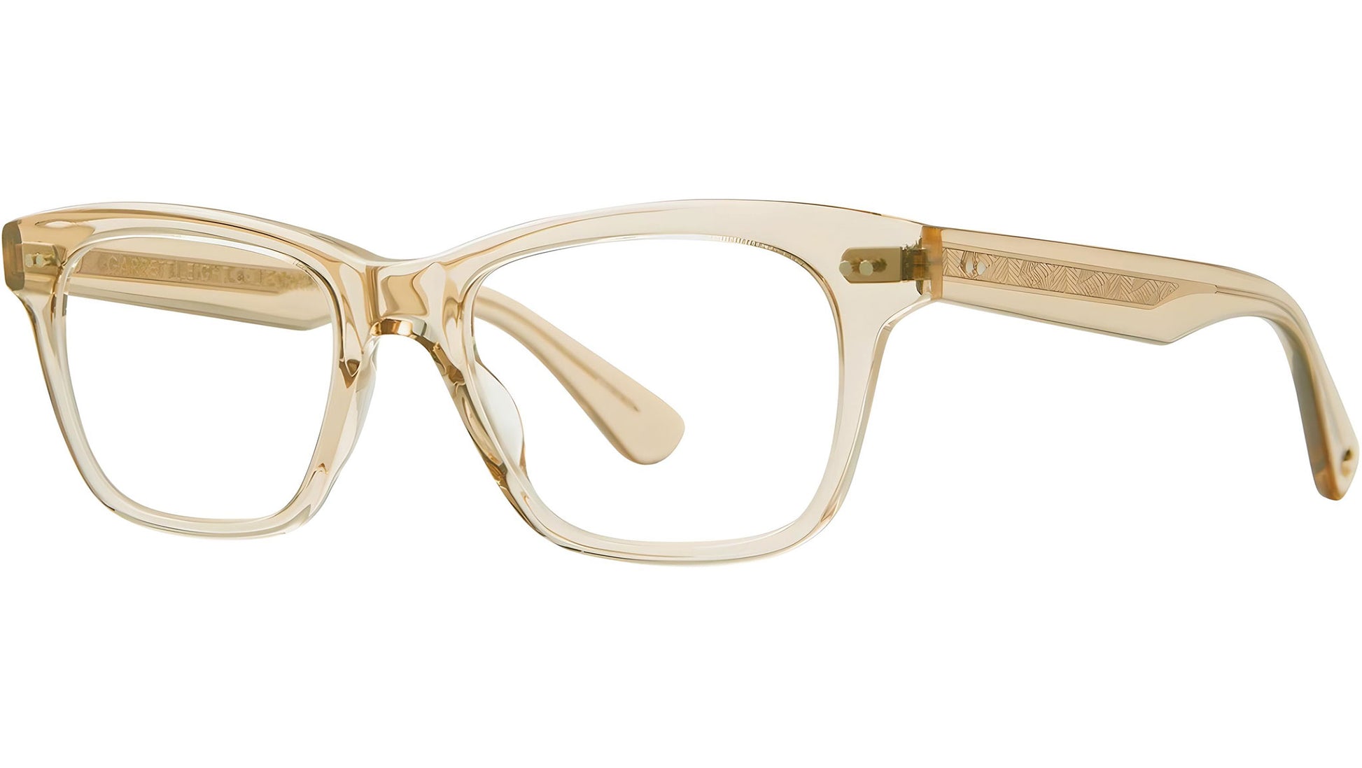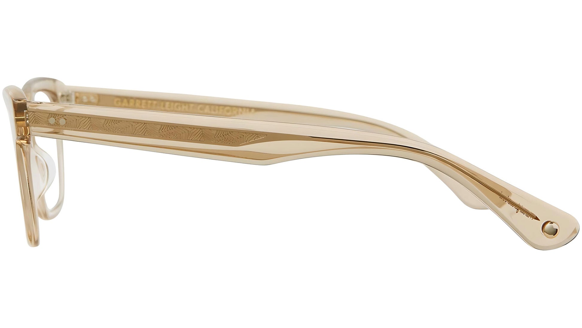 Un marco suavemente cuadrado con una frente ligeramente levantada y un puente nasal en forma de silla de montar. Con alambre central de filigrana con impresión de palma personalizada de Garrett Leight, bisagra de 5 barriles y complementados con las innovadoras patillas Comfort Fit de Garrett Leight con bordes suavizados para una experiencia de uso más cómoda. Acabado a mano. Lentes CR-39 de calidad óptica. Acetato de celulosa curado con alambre central de filigrana con impresión de palma personalizada de doble prensado. Lente de 4 bases con revestimiento antirreflejo en la parte posterior. Bisagras de 5 barriles. Incluye un estuche blando GLCO y un paño de limpieza en colores y diseños de temporada. Unisex.