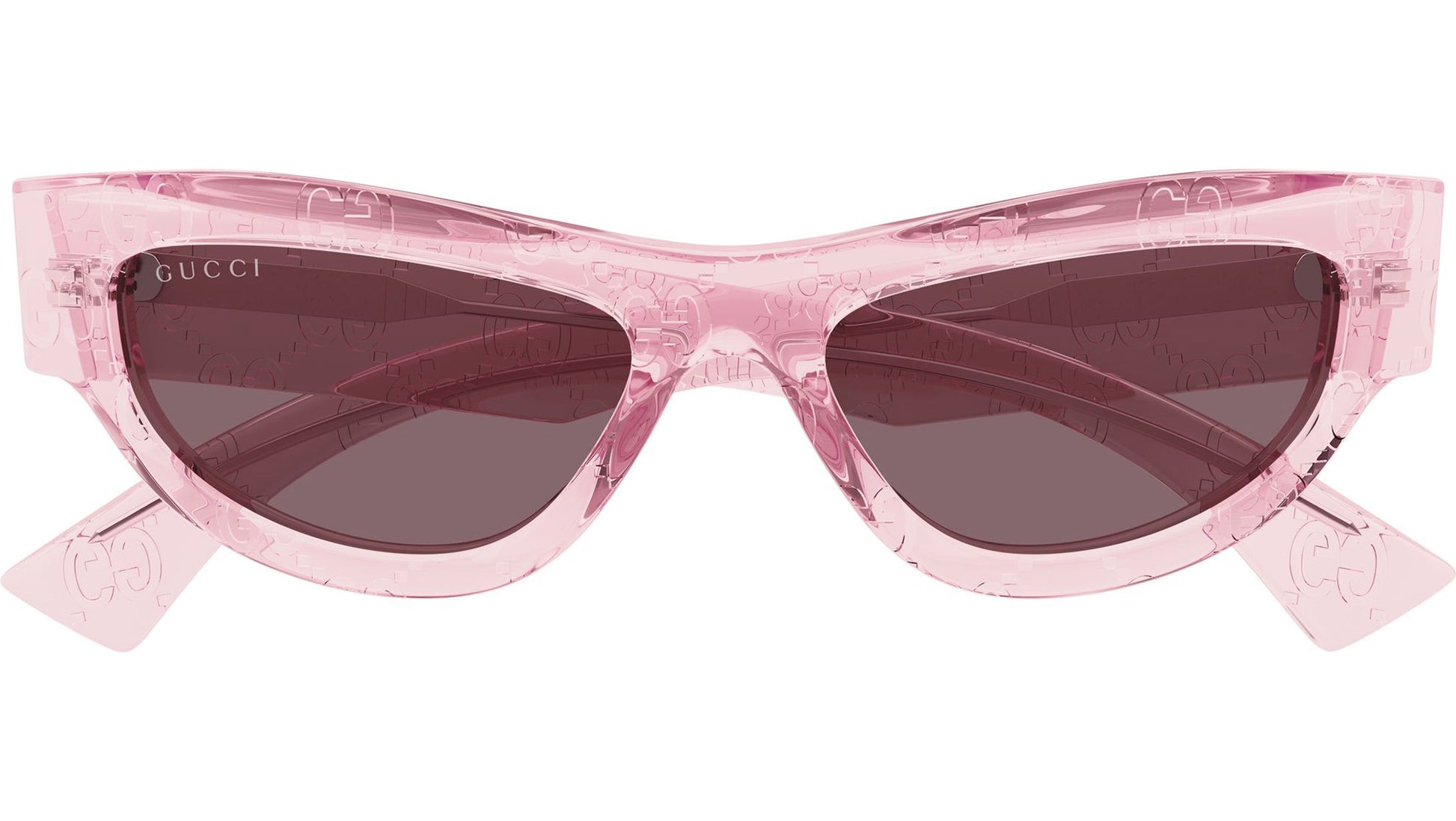 - Color del montura shiny transparent pink w/ Gucci pattern