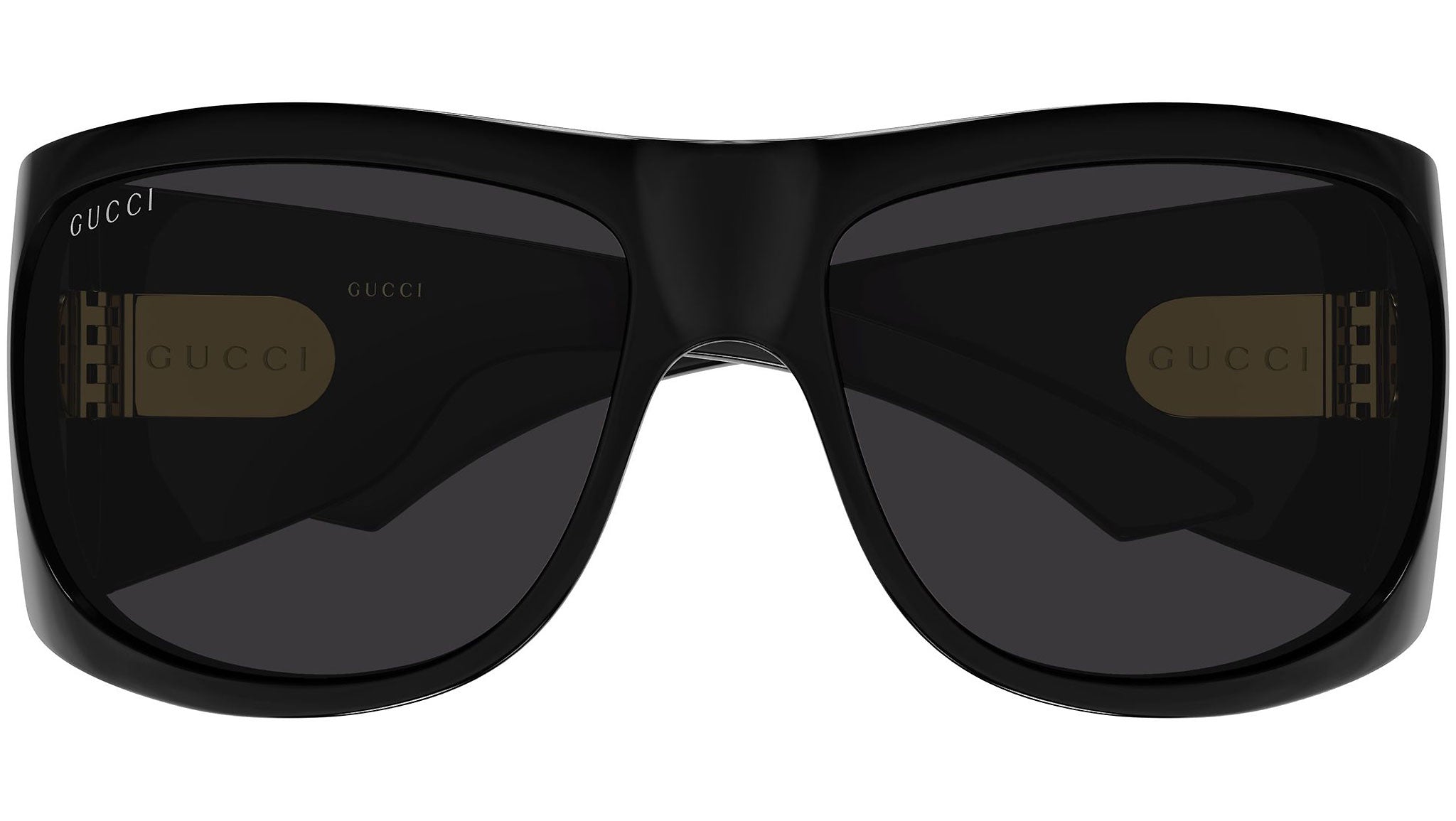 Gucci GG2170S 001 sunglasses for women, featuring shiny black geometric injection frame and solid grey bio nylon lenses. Brand line: Emblem. Style code: GG2170S. Color code: 001. Made in Japan. Authorized Gucci online reseller. Your glasses will include the original case and accessories and are covered by a 12-month global warranty.