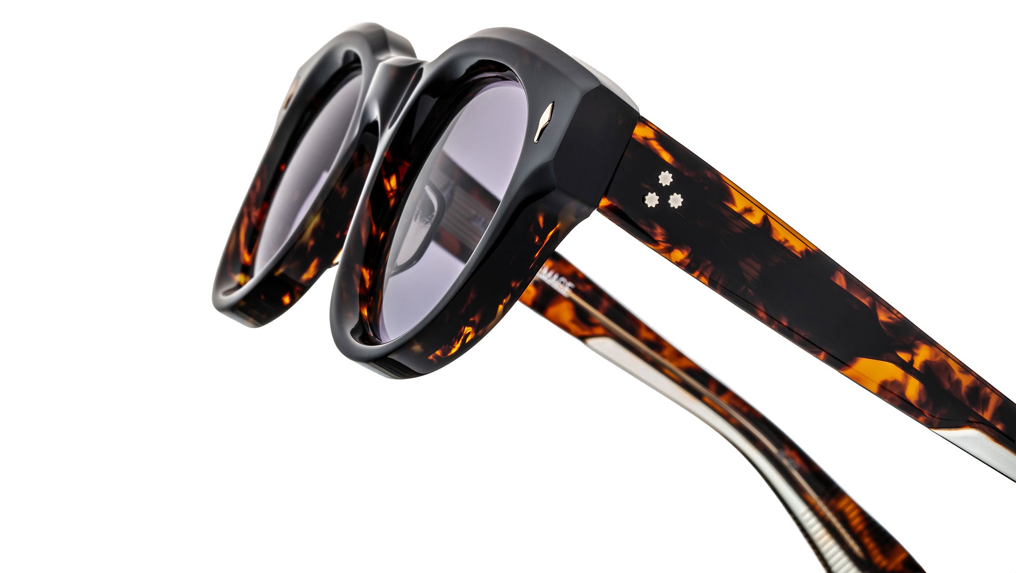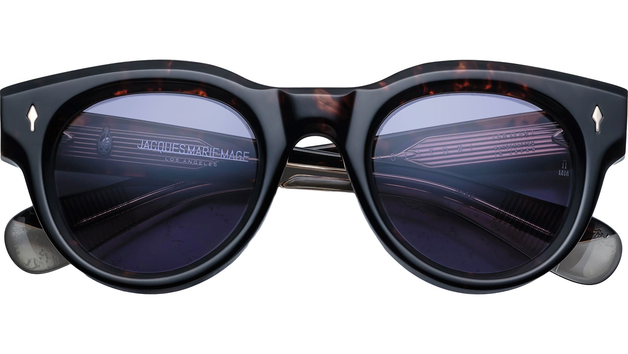 Las gafas de sol Jacques Marie Mage Molitor son una edición limitada, de un equilibrio audaz, diseñadas con un ajuste medio, que combinan armoniosamente forma y función. Elaboradas con bisagras personalizadas de 7 barriles y detalles distintivos de metal pulido, la montura presenta núcleos de alambre "Classic" expuestos que resaltan la meticulosa construcción y la estética refinada, sinónimo de la alta filosofía de diseño de la marca. LOTE DE PRODUCCIÓN LIMITADA DE 450 PIEZAS. Elaborada en acetato de celulosa curado Havana de 10 mm, esta montura presenta patillas personalizadas de acetato de doble laminado con herrajes de metal precioso y lentes azules. Incluye un pasador frontal con punta de flecha en dorado claro, un núcleo de alambre "Classic" oculto en dorado claro y bisagras de línea fina personalizadas de 7 barriles con seguridad por tensión en dorado claro. Las lentes Nimbus CR-39 de base 6 cuentan con un tratamiento antirreflejo en la parte posterior. Estuche de cuero artesanal italiano, paño de limpieza/pañuelo de bolsillo de microfibra, embalaje rígido forrado en tela de seda y certificado de prensa con membrete, número de serie de edición limitada y firma del artesano. Fabricadas en Japón. Código del modelo: JMMLM-13V