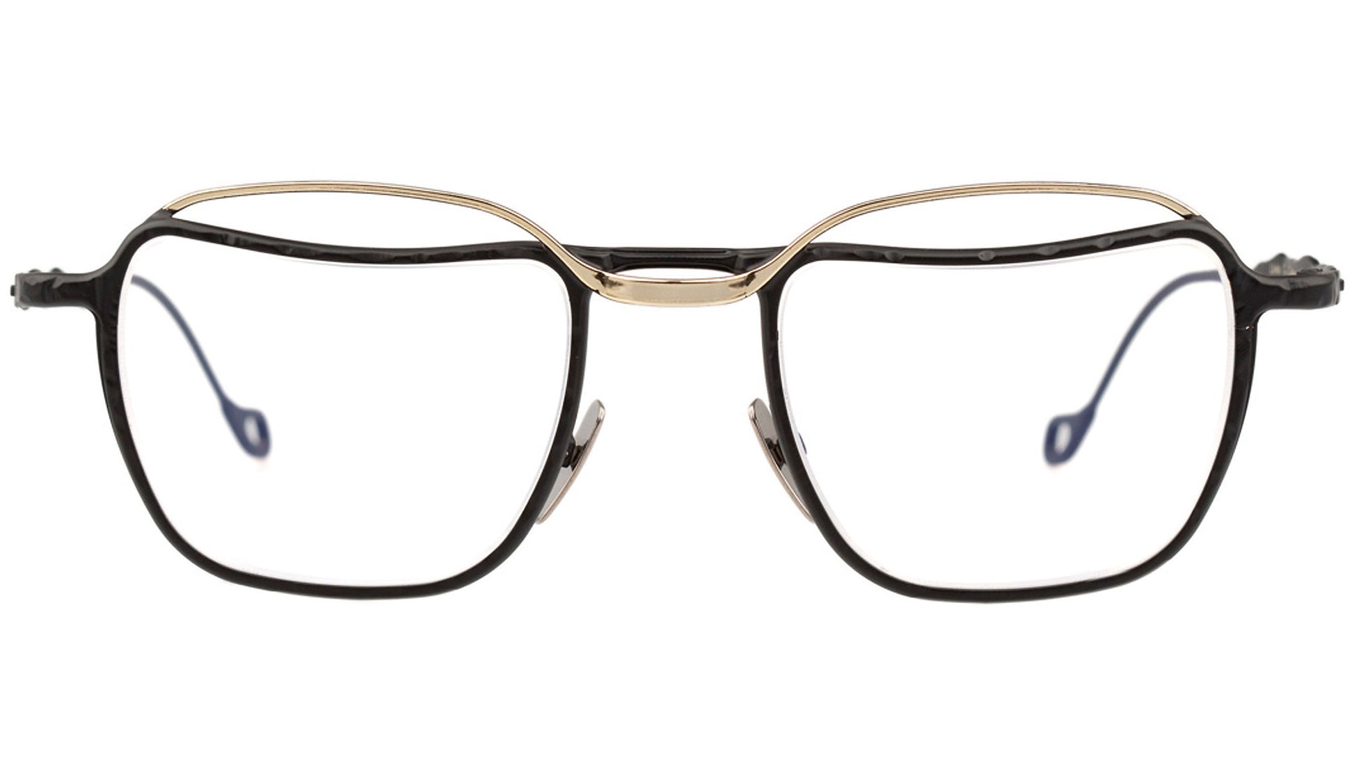 Kuboraum son máscaras que se diseñan en el rostro de sus portadores para resaltar su personalidad y carácter. Máscara es sinónimo de burla y juego. Las máscaras de Kuboraum son sinónimo de protección y refugio; son habitaciones cúbicas donde nos cobijamos, libres para vivir nuestra intimidad y mirar el mundo a través de dos lentes. Todas las máscaras están íntegramente soñadas en Berlín y hechas a mano en Italia. H71 es una montura cuadrada realizada en metal 100% made in Italy. Montura dorada y negra con lentes transparentes.