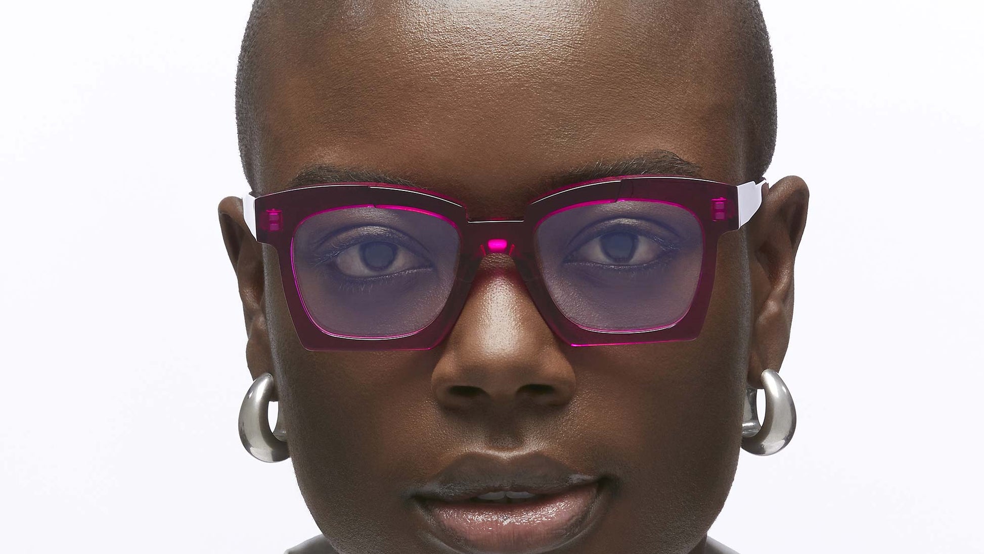 Montura óptica Kuboraum, modelo K5 CY. La máscara es sinónimo de burla y juego. Las máscaras Kuboraum son sinónimo de protección y refugio; son espacios cúbicos donde nos refugiamos, libres para vivir nuestra intimidad y mirar el mundo a través de dos lentes. Todas las máscaras son íntegramente diseñadas en Berlín y fabricadas a mano en Italia.