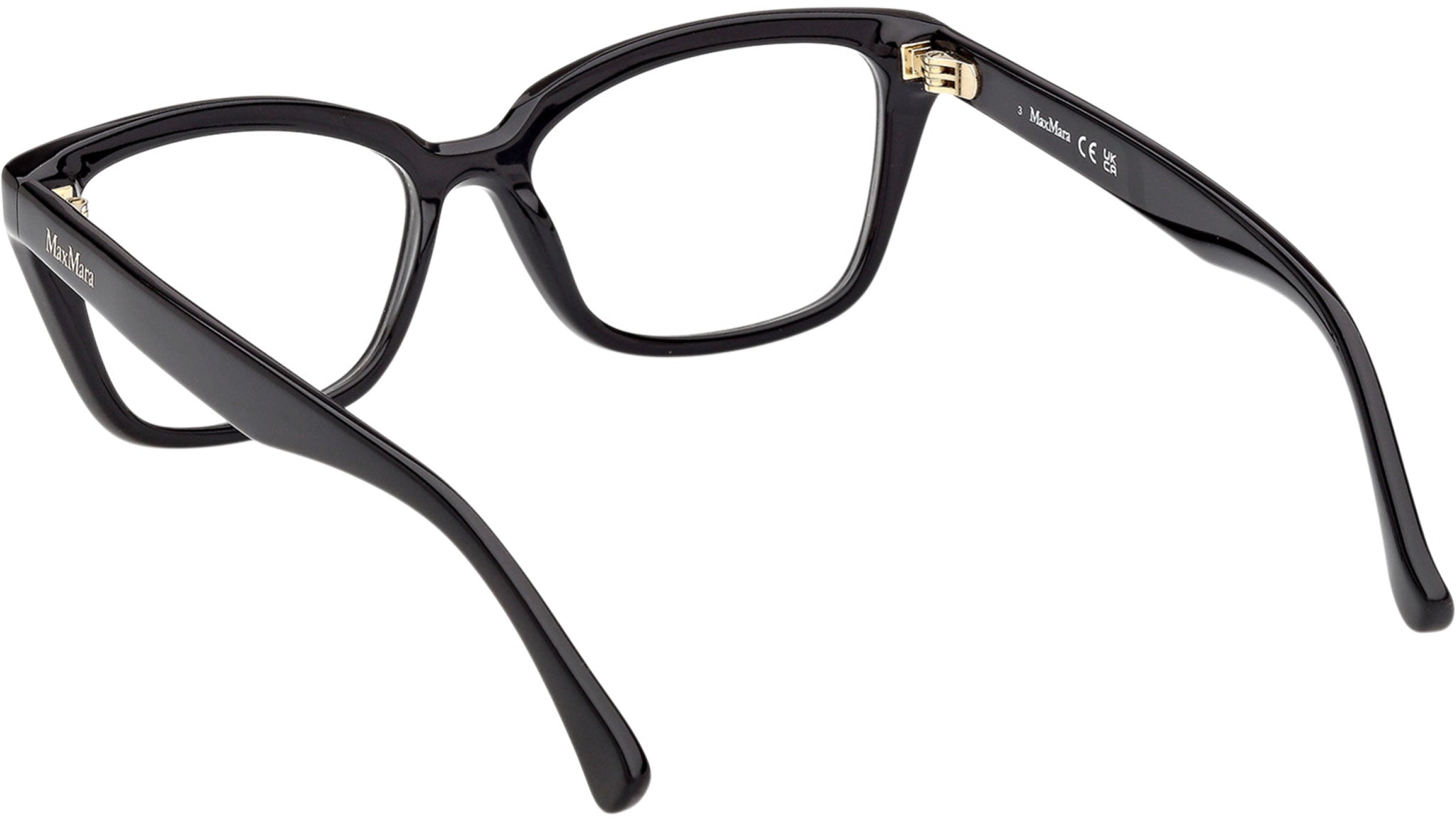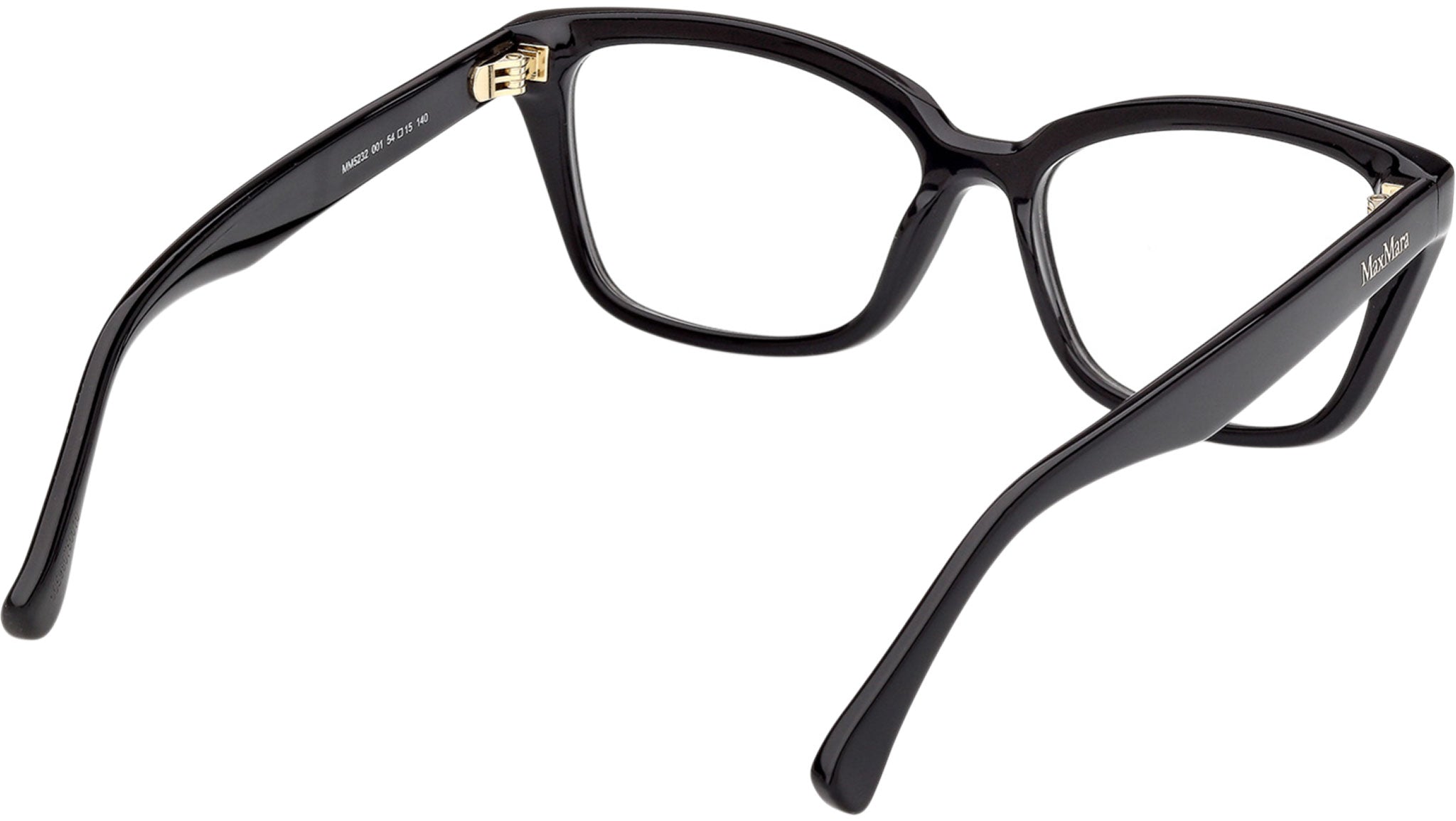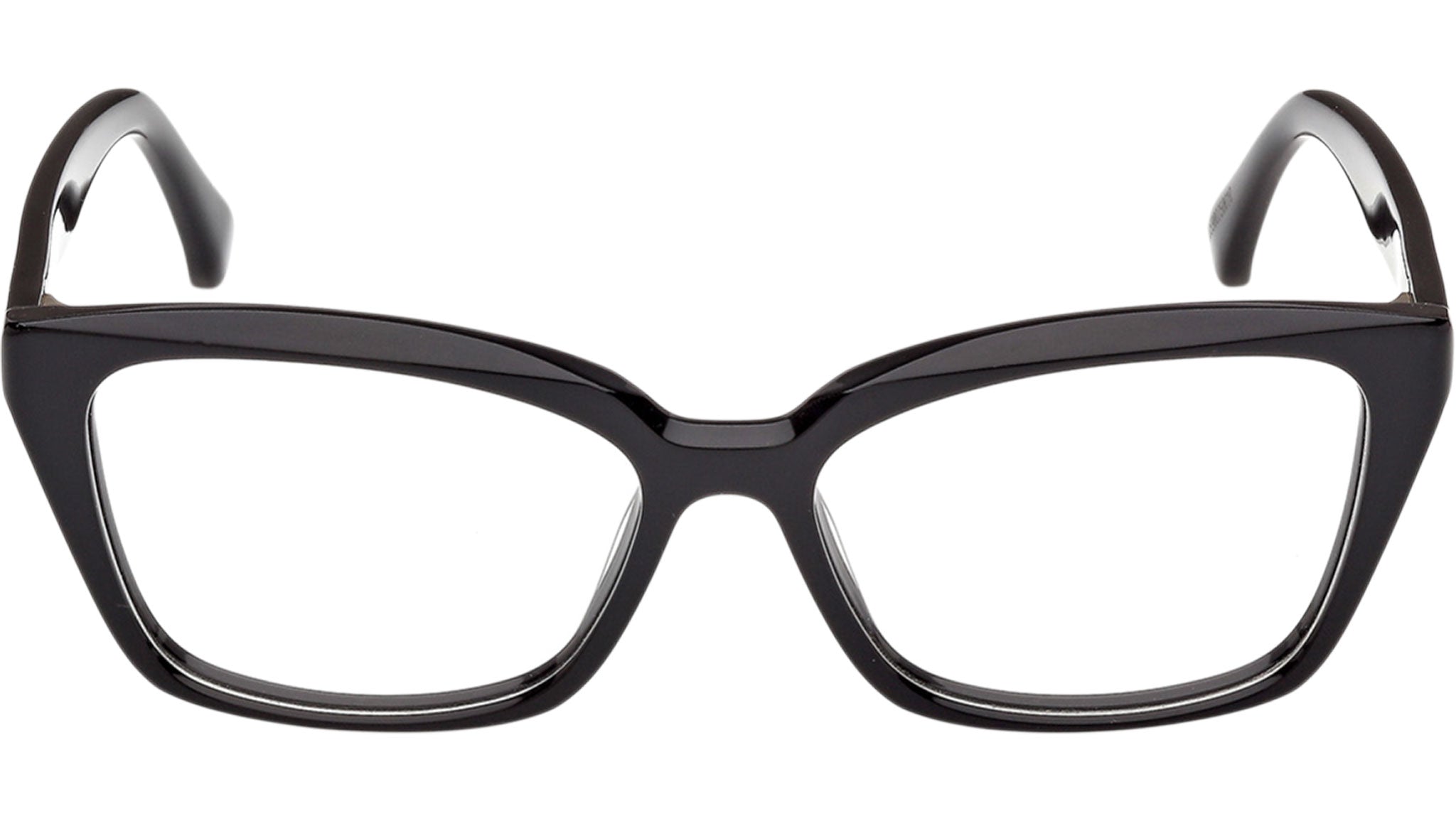 Gafas Max Mara MM5232 para mujer, modelo MM 5232, con montura completa de acetato negro brillante y lentes de muestra. Fabricadas en Italia. Código de marca: MM5232. Código de color: 001. Distribuidor autorizado en línea de Max Mara. Sus gafas incluyen el estuche y los accesorios originales, y cuentan con una garantía global de 12 meses.