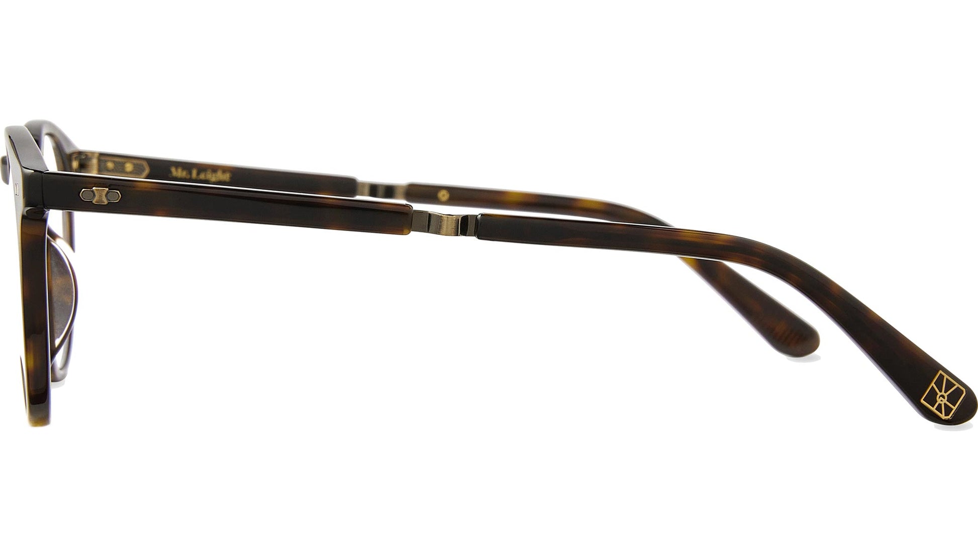 Gafas Mr. Leight Luckman C con montura de acetato y metal en color carey nogal americano/panthos dorado antiguo y lentes de demostración. Las Luckman C presentan una montura clásica P3 de mediados de siglo, caracterizada por un puente alto en forma de cerradura y elegantes patillas inclinadas. Este diseño se realza con filigrana City Scape y placas geométricas en las patillas, que le confieren una estética atemporal. Fabricadas en Japón, están equipadas con lentes CR-39 de calidad óptica y un alambre con núcleo metálico de titanio grabado a medida. La montura incluye una lente de base 4 con tratamiento antirreflejo posterior, un puente nasal en forma de cerradura y pasadores hexagonales remachados a medida en la parte delantera. Además, cuenta con una bisagra de 3 cuerpos con grabado personalizado y una tapa con el logotipo de Mr. Leight esmaltada, lo que las convierte en una opción sofisticada para uso unisex. Código de estilo: ML1052. Código de color: HKT-ATG. Distribuidor autorizado en línea de Mr. Leight. Tus gafas incluirán el estuche y los accesorios originales y están cubiertas por una garantía global de 12 meses.