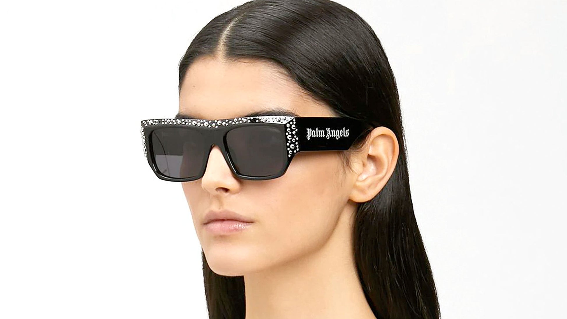 Casablanca es el estilo más precioso de la colección. La forma escultural rectangular de gran tamaño se caracteriza por detalles fresados que le dan al marco un aspecto grueso y audaz sin el peso. El frente está adornado con tachuelas metálicas colocadas a mano, que hacen de este estilo el pináculo de la colección. Las patillas están enriquecidas con el icónico logo «Palm Angels».