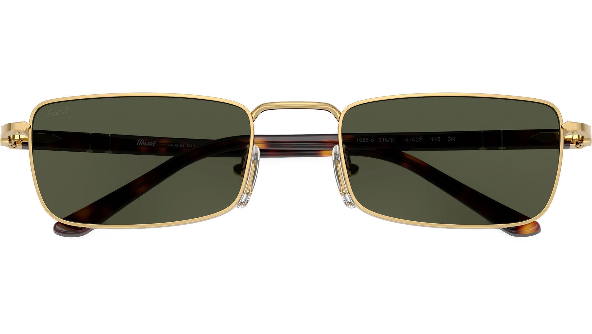 Gafas de sol Persol para hombre y mujer, modelo PO1025S 515/31, con montura metálica dorada y lentes de cristal de base verde de 2,5 mm. Plaquetas ajustables. Línea de montura: Sartoria. Código de marca: 0PO1025S. Código de color: 515/31. Distribuidor autorizado en línea de gafas Persol. Sus gafas incluyen el estuche y los accesorios originales, y cuentan con una garantía global de 12 meses.