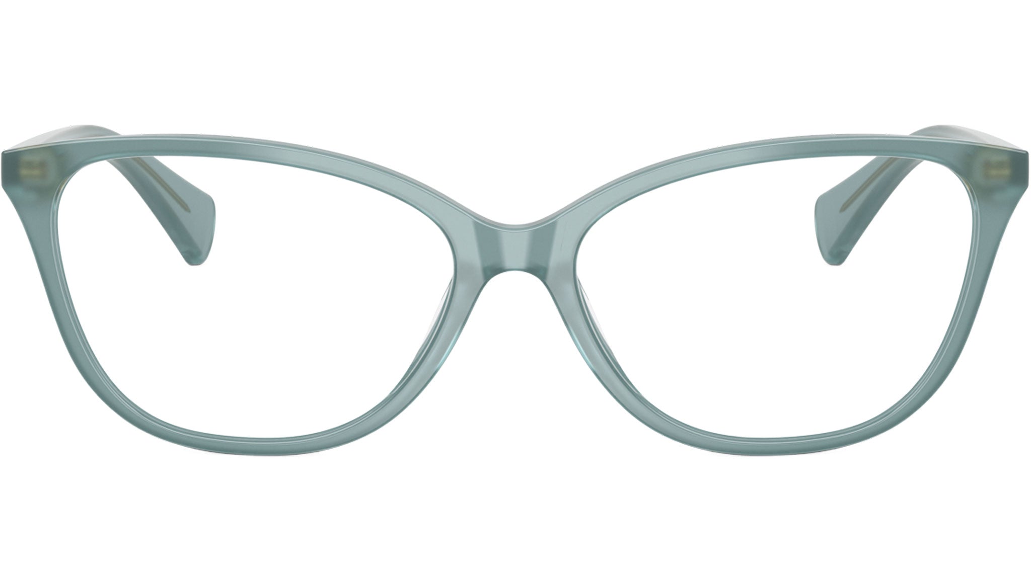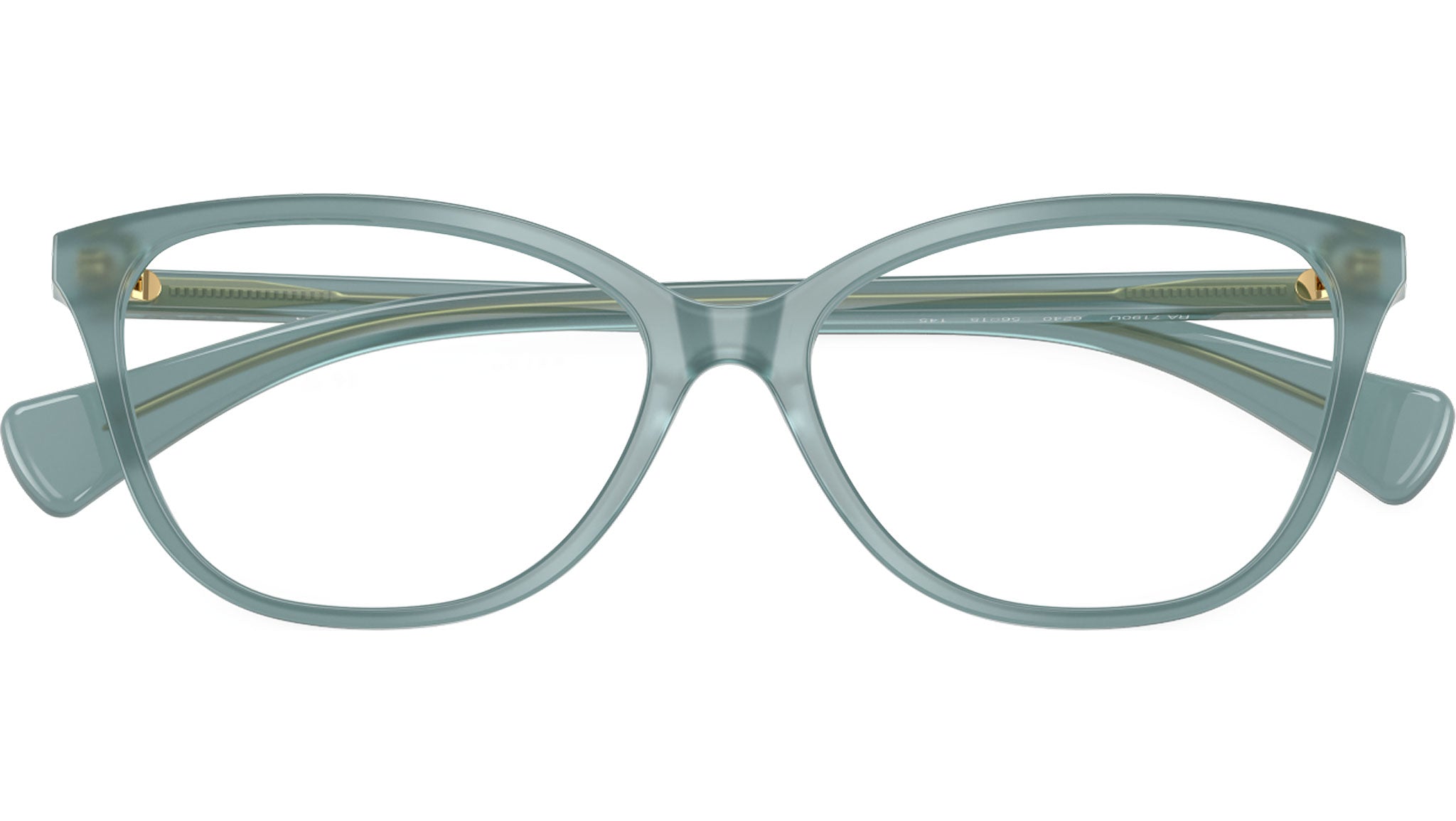 Ralph RA7190U 6240 glasses, featuring transparent light blue butterfly acetate frame and demo lenses. Universal fit. Brand line: Essential. Style code: 0RA7190U. Color code: 6240. Authorized Ralph online reseller. Your glasses will include the original case and accessories and are covered by a 12-month global warranty.