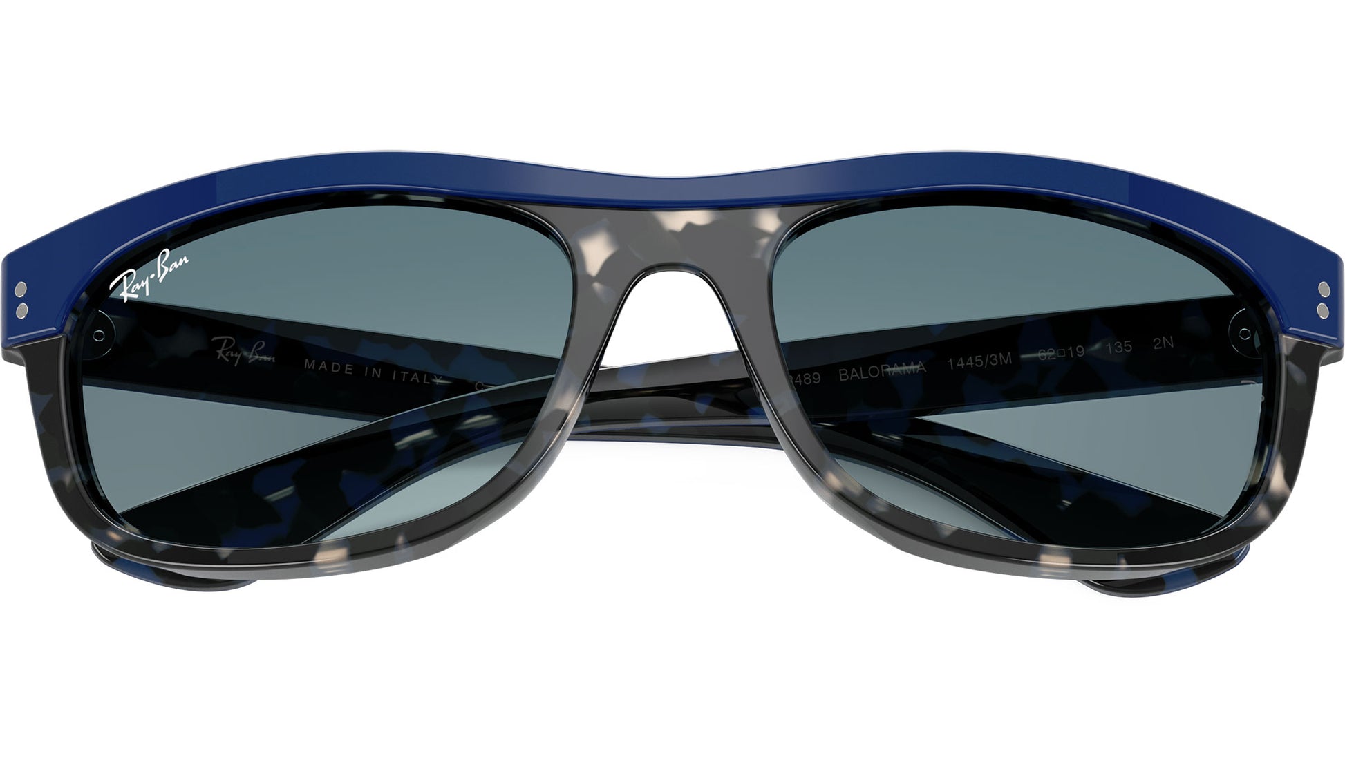 Ray-Ban Balorama RB2489 14453M sunglasses for men and woman, featuring blue on havana rectangular acetate frame and blue gradient grey glass lenses. High bridge fit. Brand line: Evolution. Style code: 0RB2489. Color code: 14453M. Authorized Ray-Ban online reseller. Your glasses will include the original case and accessories and are covered by a 12-month global warranty.