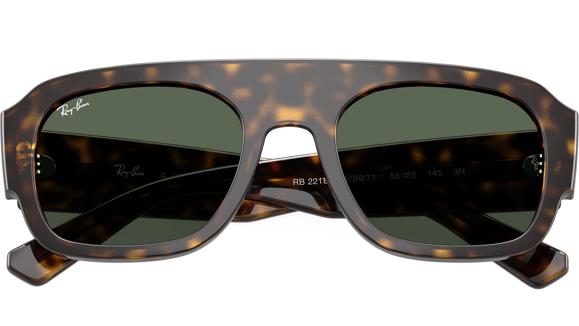 Gafas de sol Ray-Ban RB2218 679071 para hombre y mujer, con montura de inyección geométrica color habana y lentes de biopoliamida verdes. Puente alto. Línea de la marca: Core. Código de estilo: 0RB2218. Código de color: 679071. Distribuidor autorizado en línea de Ray-Ban. Sus gafas incluyen el estuche y los accesorios originales, y están cubiertas por una garantía global de 12 meses.