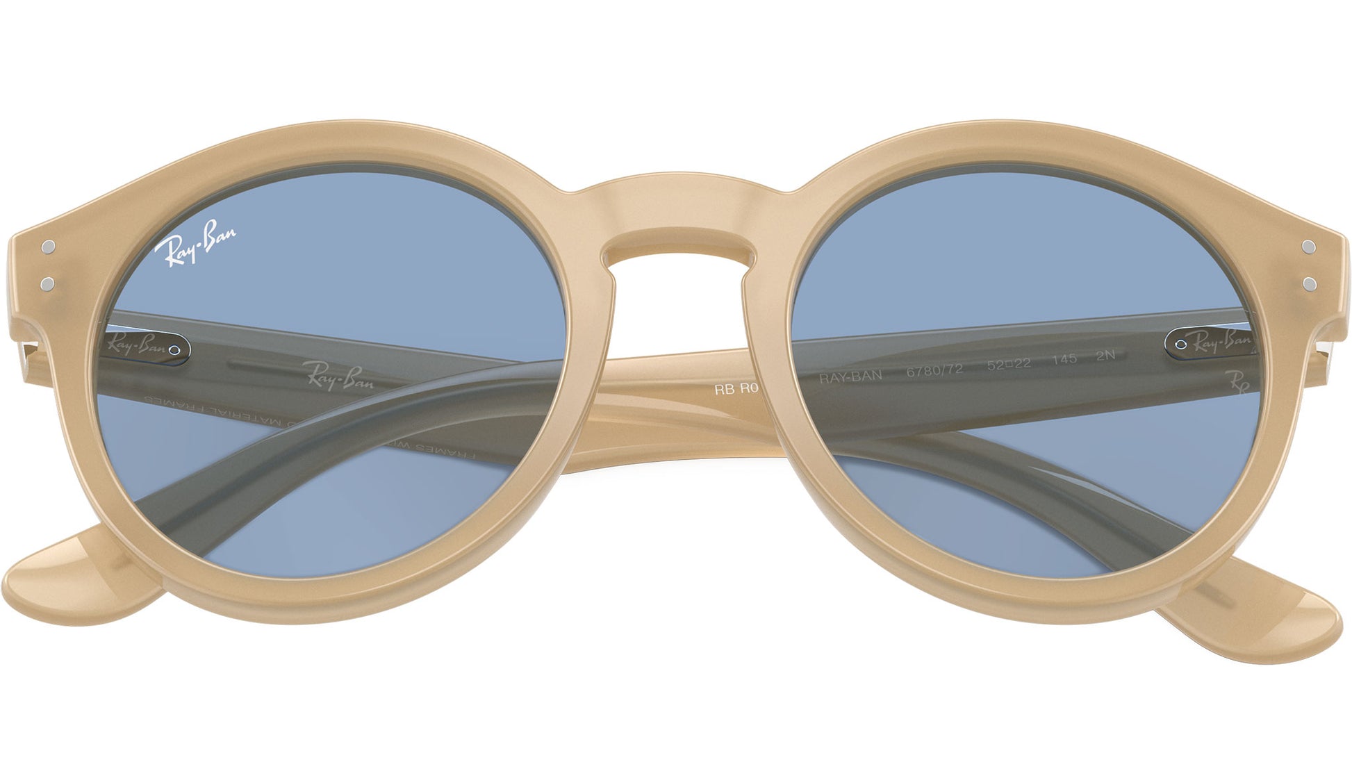 Ray-Ban RBR0505S 678072 sunglasses for men and woman, featuring opal beige panthos injection frame and grey bio polyamide lenses. High bridge fit. Brand line: Essentials. Style code: 0RBR0505S. Color code: 678072. Authorized Ray-Ban online reseller. Your glasses will include the original case and accessories and are covered by a 12-month global warranty.