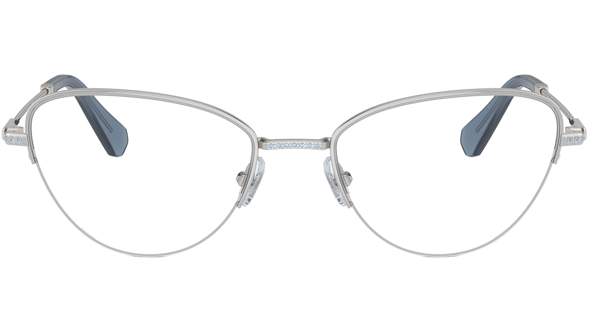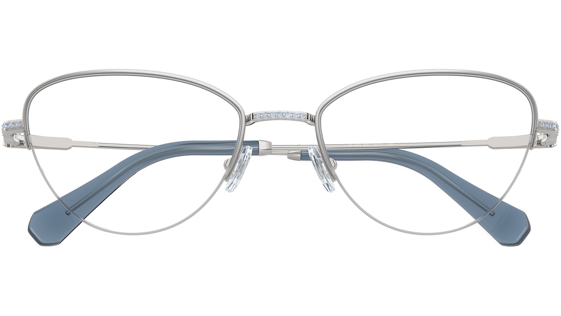 Swarovski optical frame for women model 1010 featuring silver semi rim metal frame and base 4 demo lens. Adjustable nosepads. Frame line: Science of Elegance. Brand code: 0SK1010. Color code: 4001. Authorised Swarovski Eyewear Online Reseller. Your glasses will come including the original case and accessories and will be covered by 12 month global warranty.