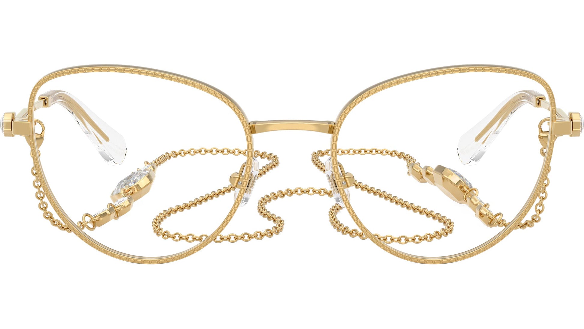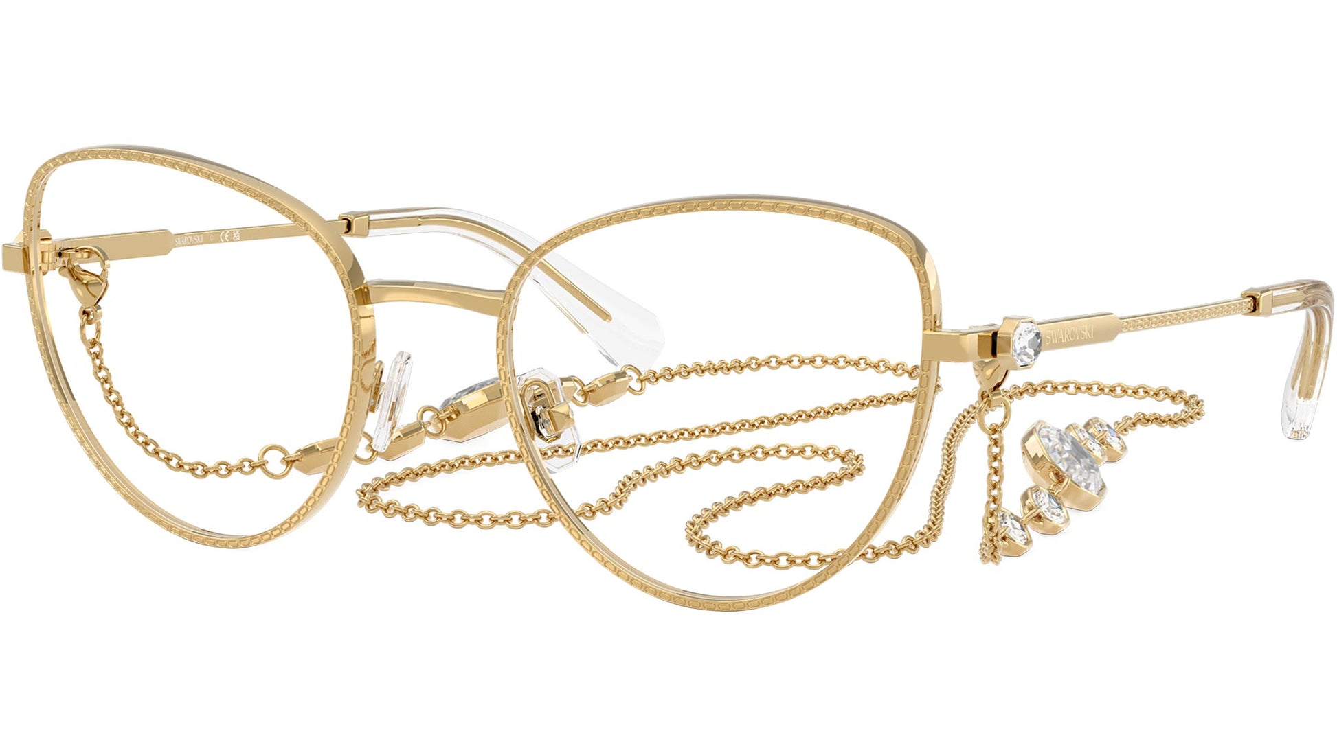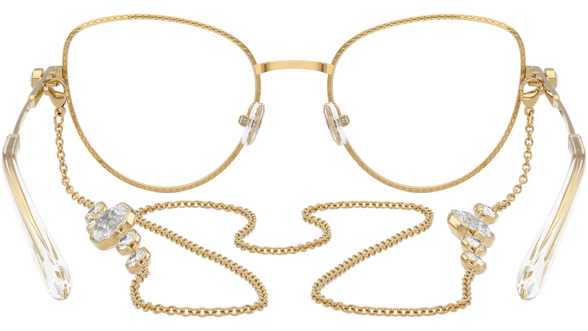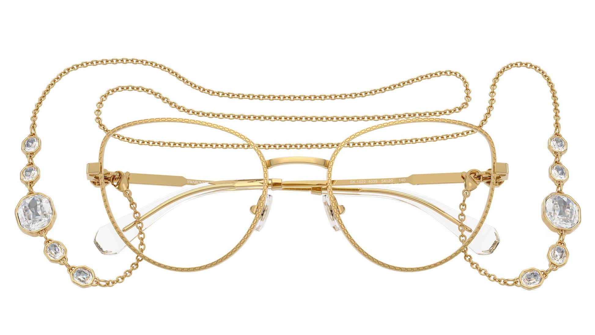 Gafas Swarovski SK1022 4039 para mujer, con montura metálica dorada de ojo de gato y lentes de muestra. Plaquetas nasales ajustables. Línea de la marca: Science of Facets. Código de estilo: SK1022. Código de color: 4039. Distribuidor autorizado de Swarovski en línea. Sus gafas incluyen el estuche y los accesorios originales, y cuentan con una garantía global de 12 meses.