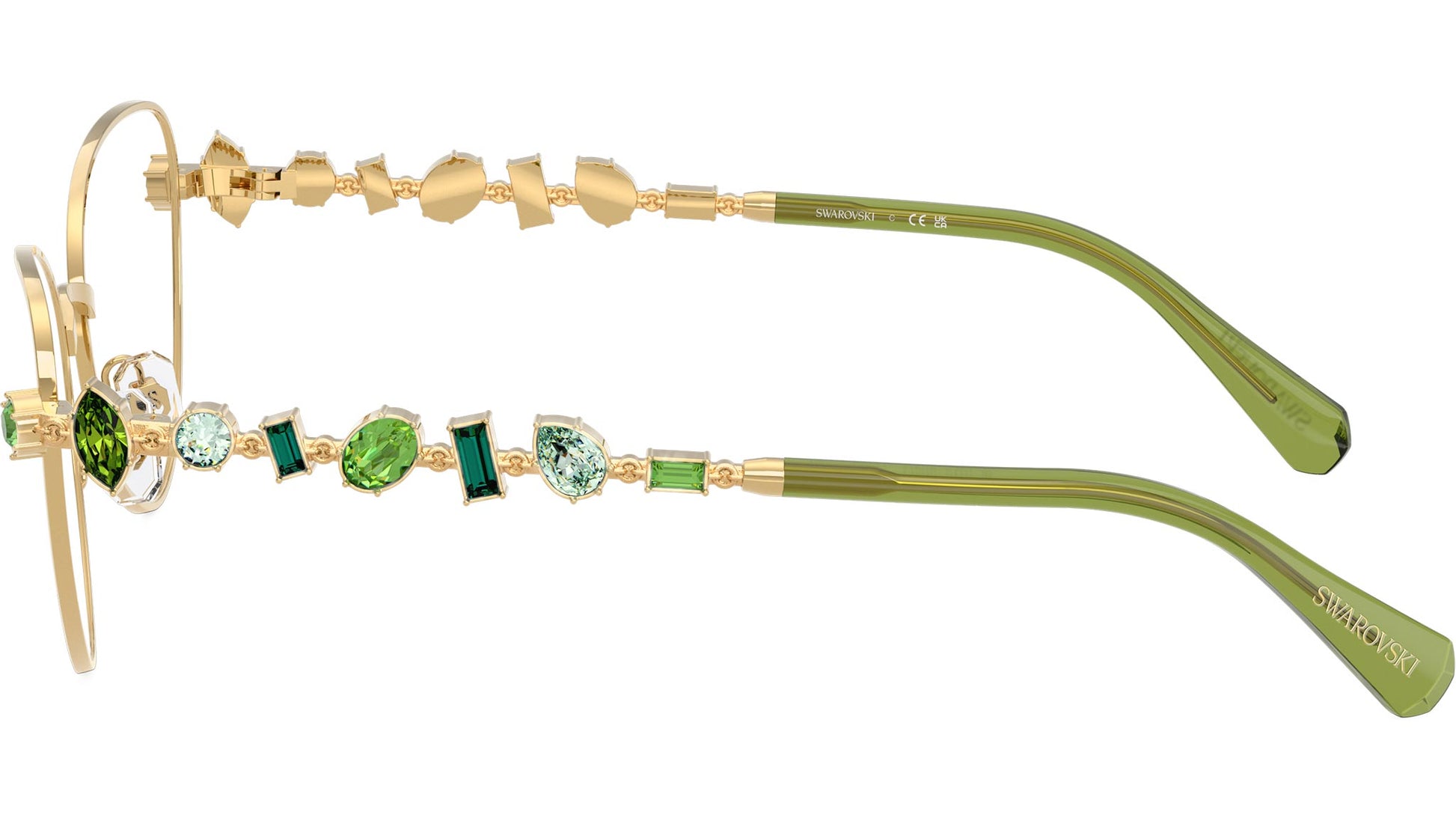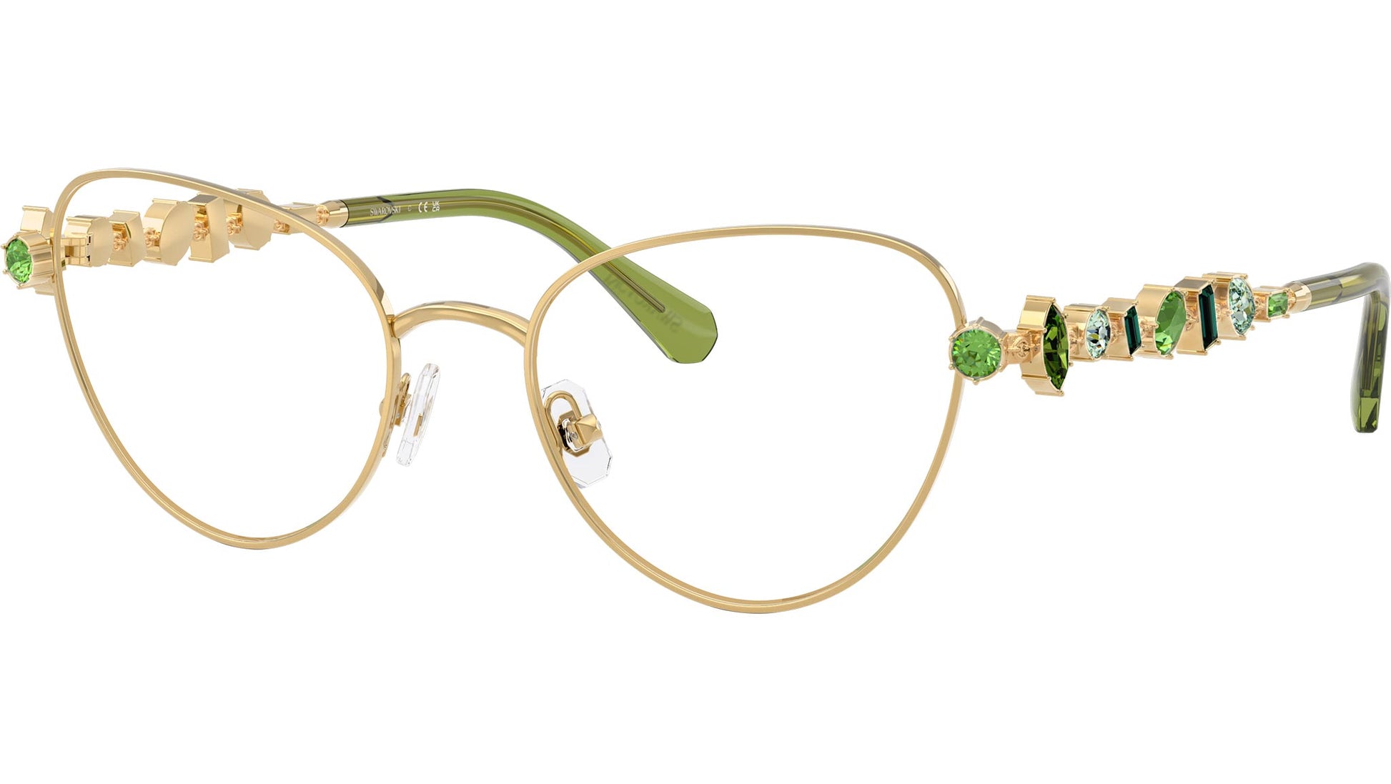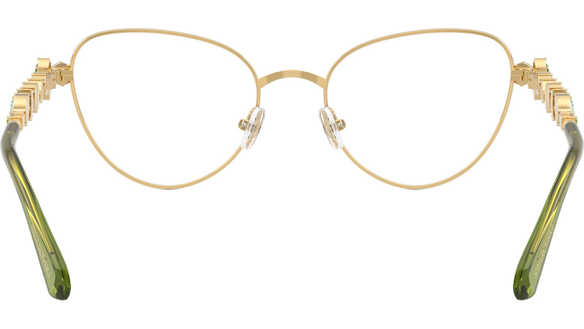 Gafas Swarovski SK1024 404G para mujer, con montura metálica dorada de ojo de gato y lentes de muestra. Plaquetas nasales ajustables. Línea de la marca: Science of Facets. Código de estilo: SK1024. Código de color: 404G. Distribuidor autorizado de Swarovski en línea. Sus gafas incluyen el estuche y los accesorios originales, y cuentan con una garantía global de 12 meses.