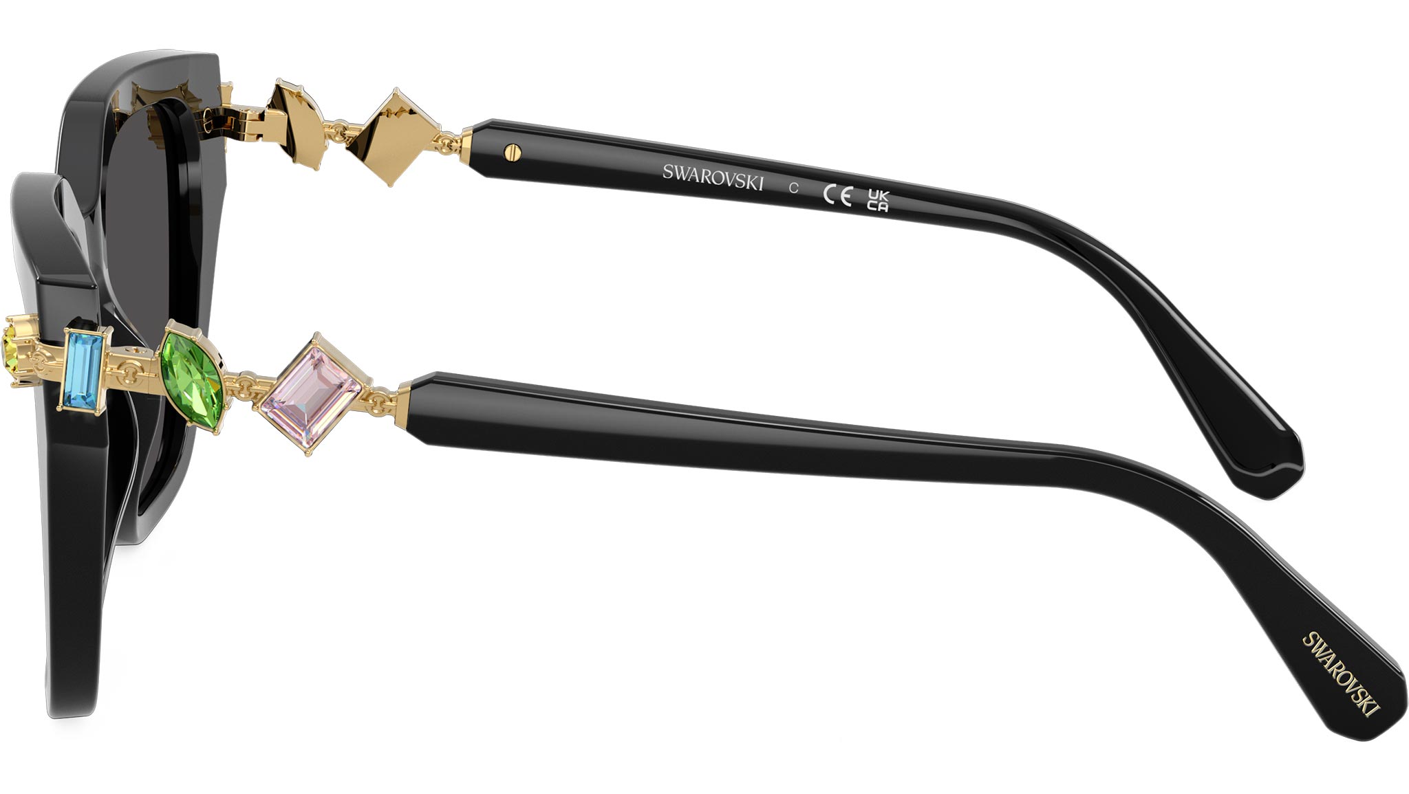 Gafas de sol Swarovski SK6041 100187 para mujer, con montura geométrica de acetato negro y lentes de poliamida gris oscuro. Puente alto. Línea de la marca: Science of Facets. Código de estilo: SK6041. Código de color: 100187. Distribuidor autorizado de Swarovski en línea. Sus gafas incluyen el estuche y los accesorios originales, y cuentan con una garantía global de 12 meses.