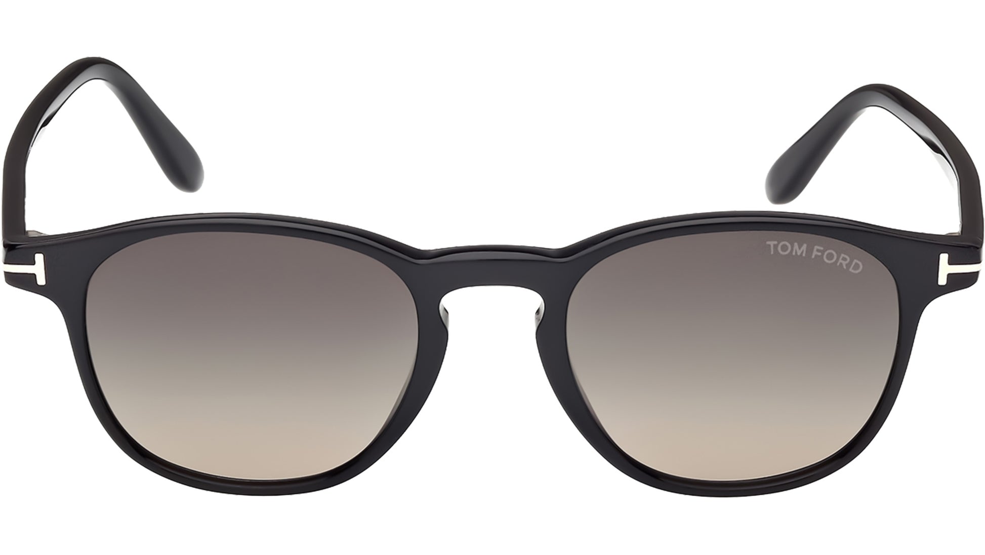 Tom Ford Holt-02 sunglasses for men model FT1302 featuring shiny black full-rim acetate frame and gradient smoke lenses. Brand code: 1302. Color code: 01B. Authorised Tom Ford Online Reseller. Your glasses will include the original case and accessories and will be covered by a 12-month global warranty.