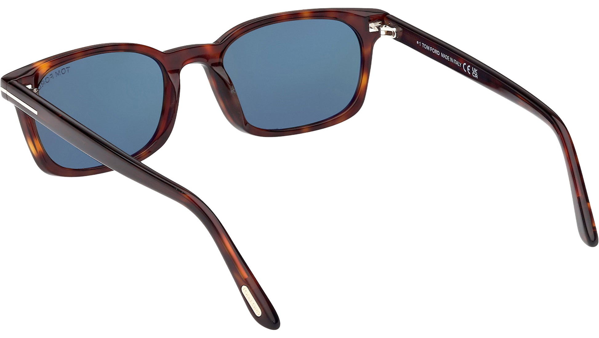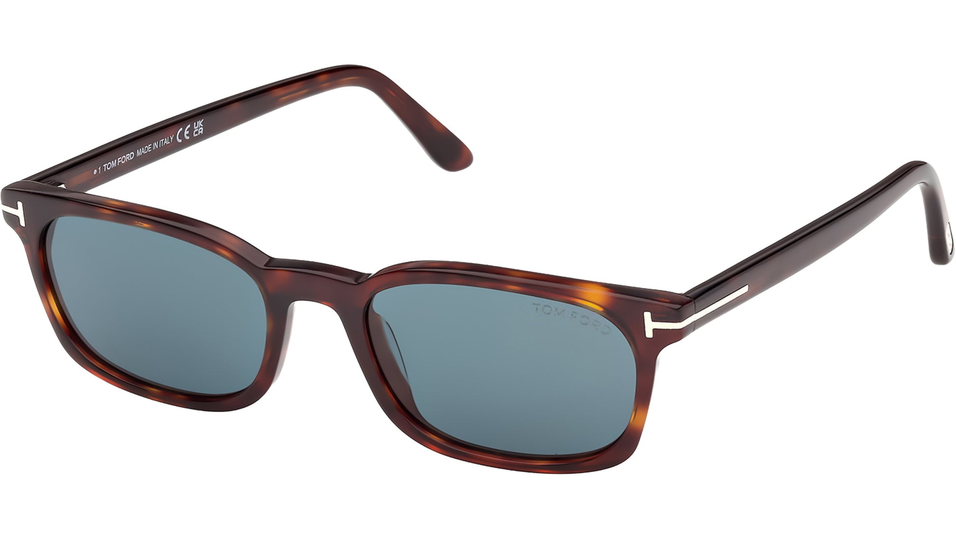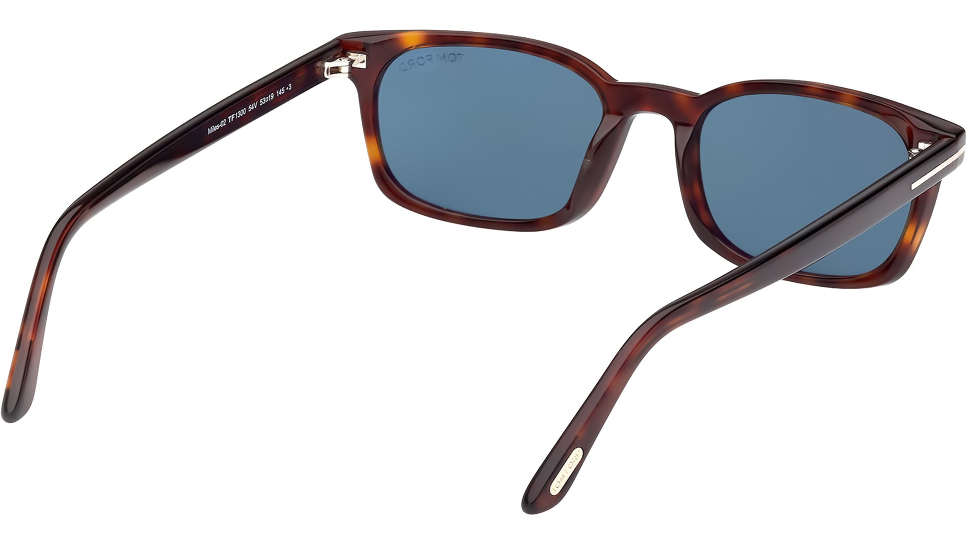 Tom Ford Miles-02 sunglasses for men model FT1300 featuring red havana full-rim acetate frame and blue lenses. Brand code: 1300. Color code: 54V. Authorised Tom Ford Online Reseller. Your glasses will include the original case and accessories and will be covered by a 12-month global warranty.