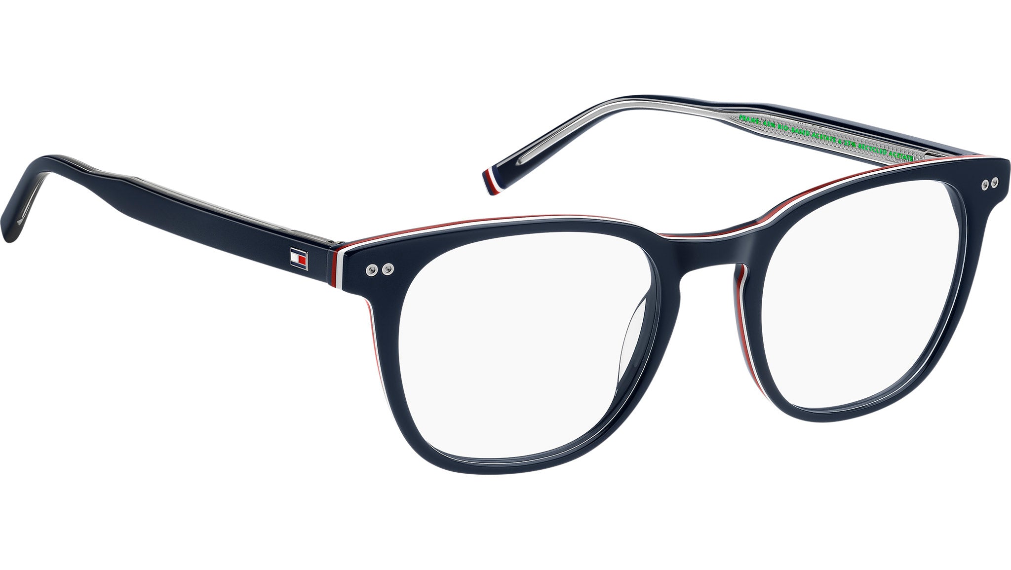 Gafas Tommy Hilfiger TH 2187 PJP con montura rectangular de acetato ecológico azul y lentes de muestra. El estilo preppy de Tommy Hilfiger es tendencia, y estas gafas para hombre no son la excepción. La marca apuesta por una mayor sostenibilidad, fabricando estas gafas en acetato renovado. Se realzan con elegantes detalles, como los dos remaches en la parte frontal, la inconfundible bandera en las patillas y la cinta en el extremo izquierdo. Están disponibles en colores clásicos o tonos de tendencia, incluyendo una opción multicapa. Línea de la marca: Modern Preppy. Código de estilo: 109415. Código de color: PJP. Distribuidor online autorizado de Tommy Hilfiger. Sus gafas incluyen el estuche y los accesorios originales, y cuentan con una garantía global de 12 meses.