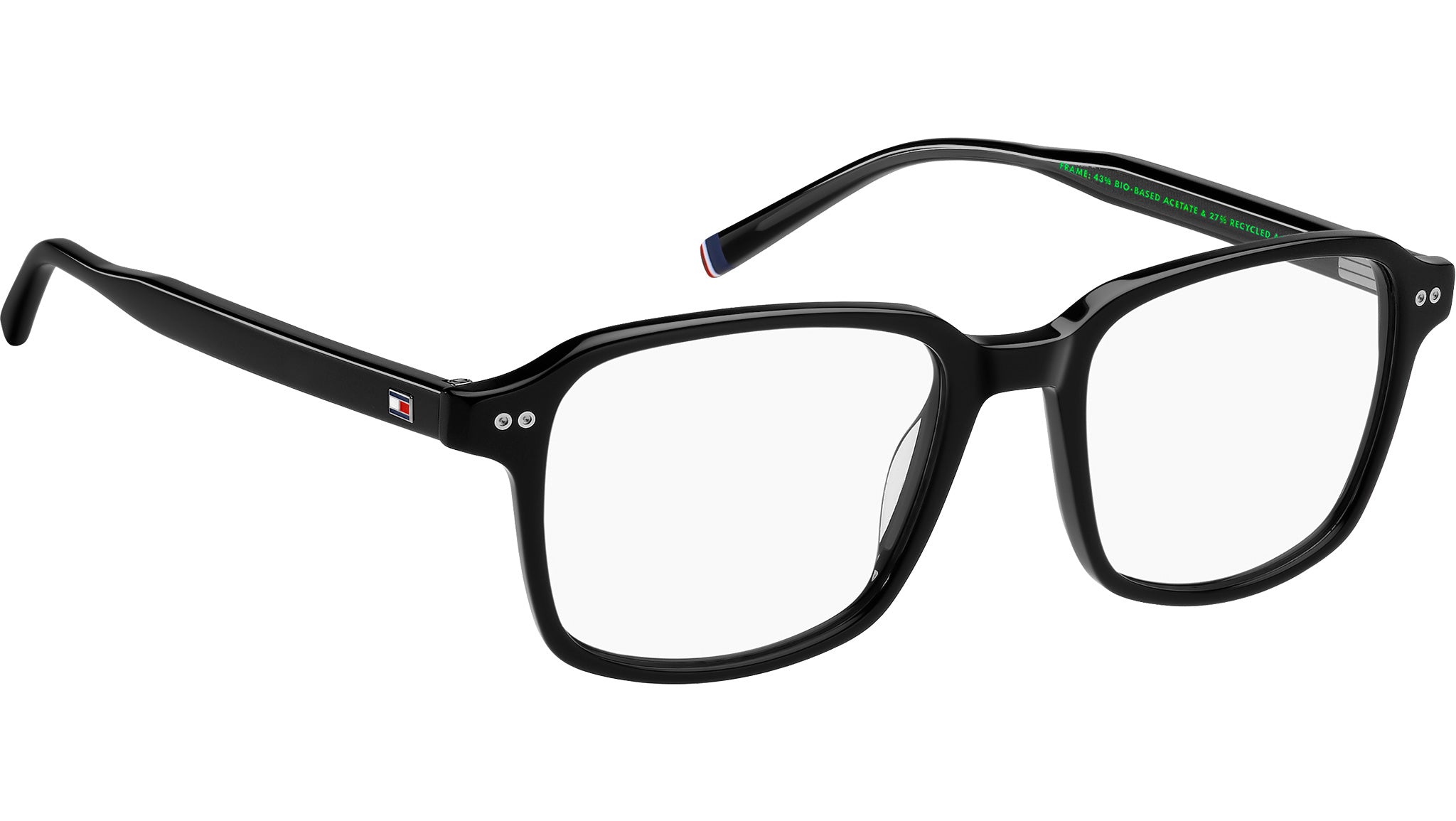 Gafas Tommy Hilfiger TH 2190 807 con montura rectangular negra de acetato ecológico y lentes de muestra. El estilo preppy de Tommy Hilfiger es tendencia, y estas gafas para hombre no son la excepción. La marca apuesta por una mayor sostenibilidad, fabricando estas gafas en acetato renovado. Se realzan con elegantes detalles, como los dos remaches en la parte frontal, la inconfundible bandera en las patillas y la cinta en el extremo izquierdo. Están disponibles en colores clásicos o tonos de tendencia, incluyendo una opción multicapa. Línea de la marca: Modern Preppy. Código de estilo: 109419. Código de color: 807. Distribuidor online autorizado de Tommy Hilfiger. Sus gafas incluyen el estuche y los accesorios originales, y cuentan con una garantía global de 12 meses.
