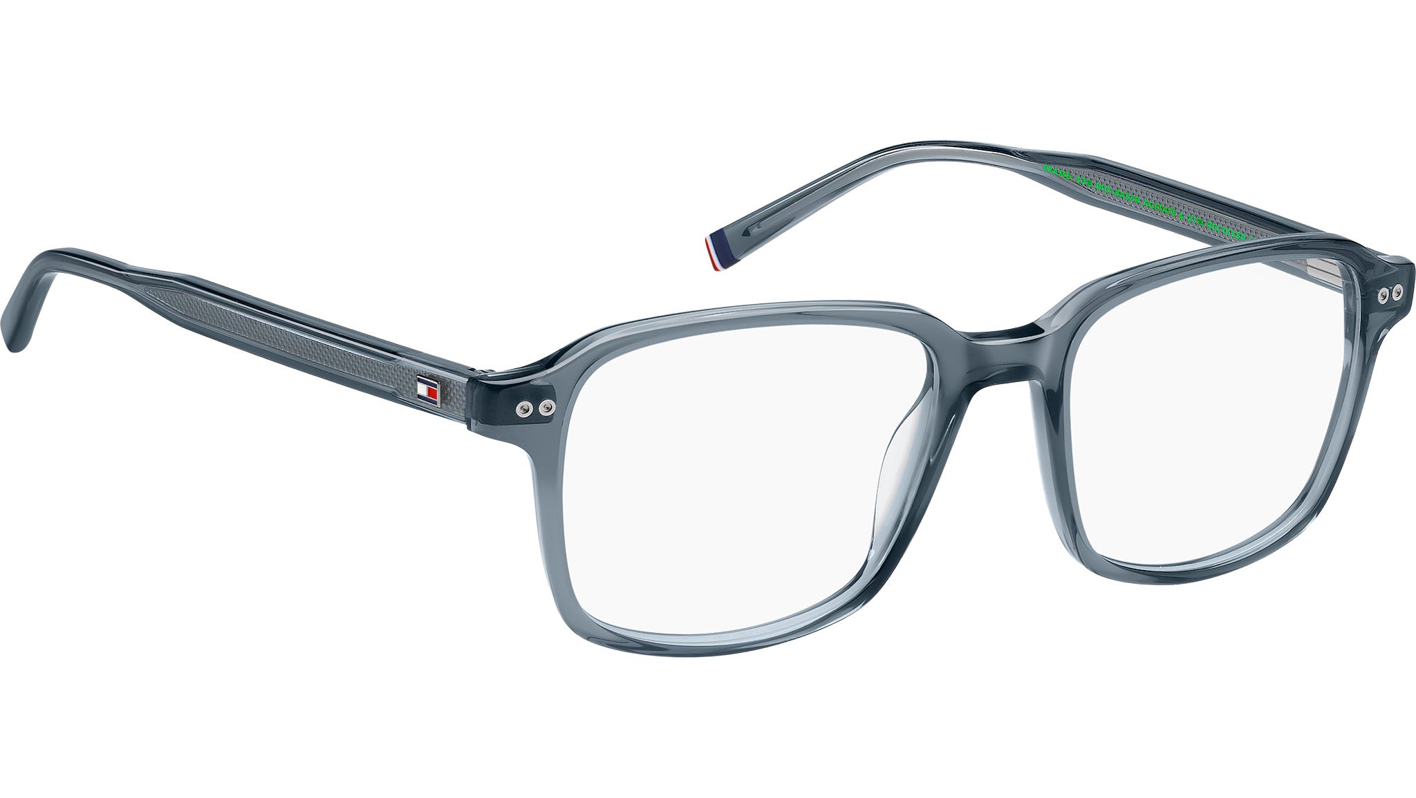 Gafas Tommy Hilfiger TH 2190 KAY con montura rectangular de acetato ecológico translúcido en gris con textura azul oscuro degradado y lentes de muestra. El estilo preppy de Tommy Hilfiger es tendencia, y estas gafas para hombre no son la excepción. La marca apuesta por una mayor sostenibilidad, fabricando estas gafas en acetato renovado. Se realzan con elegantes detalles, como los dos remaches en la parte frontal, la inconfundible bandera en las patillas y la cinta en el extremo izquierdo. Están disponibles en colores clásicos o tonos de tendencia, incluyendo una opción multicapa. Línea de la marca: Modern Preppy. Código de estilo: 109419. Código de color: KAY. Distribuidor autorizado en línea de Tommy Hilfiger. Sus gafas incluyen el estuche y los accesorios originales, y cuentan con una garantía global de 12 meses.