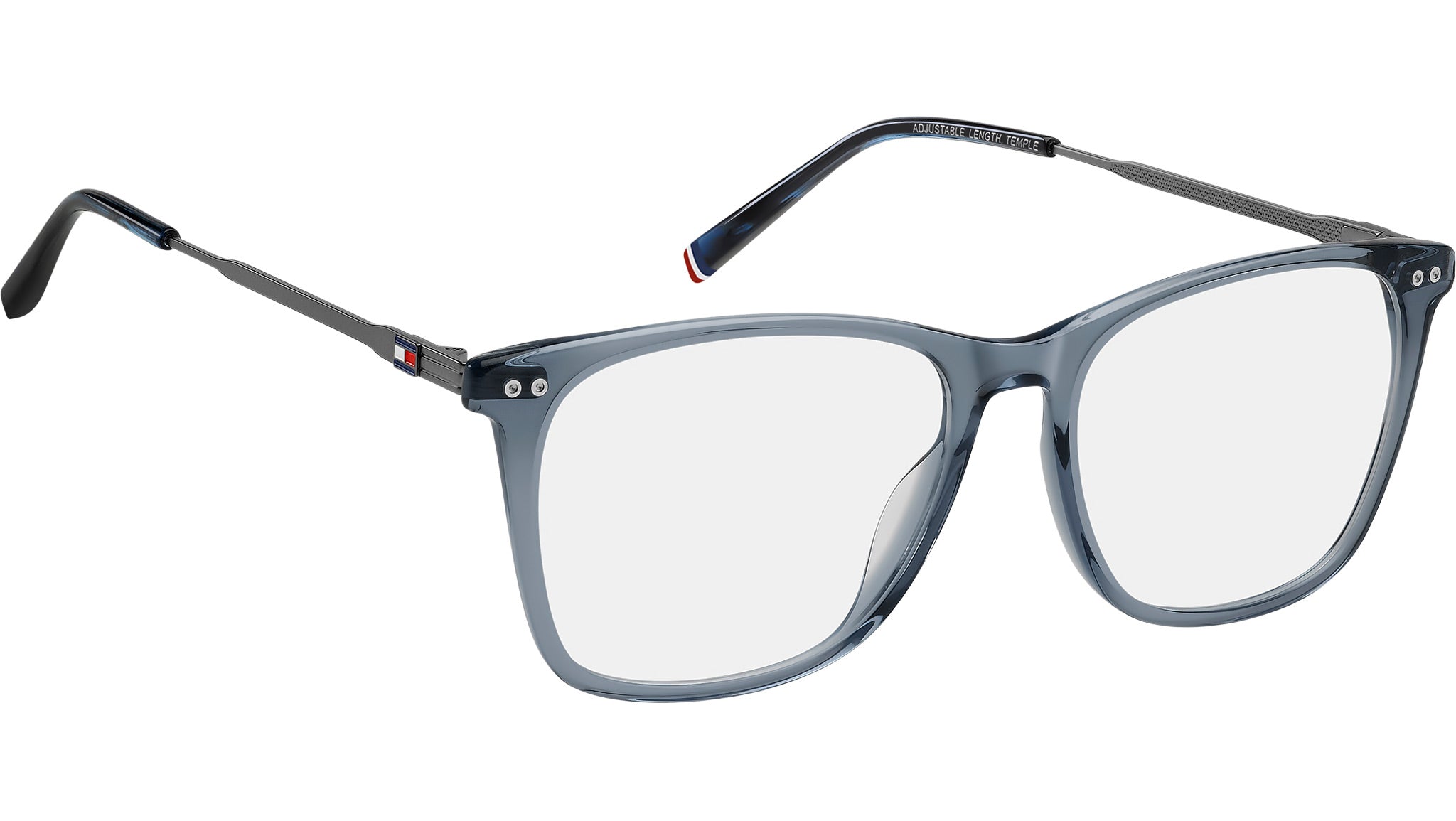 Gafas Tommy Hilfiger TH 2195 PJP con montura rectangular de acetato azul y lentes de muestra. Estas gafas preppy Tommy Hilfiger se inspiran en el estilo universitario estadounidense. Su estética casual-chic se ha actualizado con detalles de tendencia, como los remaches dobles en la parte frontal. La bandera de la marca decora las patillas, con un lazo en el extremo izquierdo. Formas y materiales se combinan para garantizar la ligereza. Línea de la marca: Modern Preppy. Código de estilo: 109426. Código de color: PJP. Distribuidor autorizado en línea de Tommy Hilfiger. Sus gafas incluyen el estuche y los accesorios originales, y cuentan con una garantía global de 12 meses.