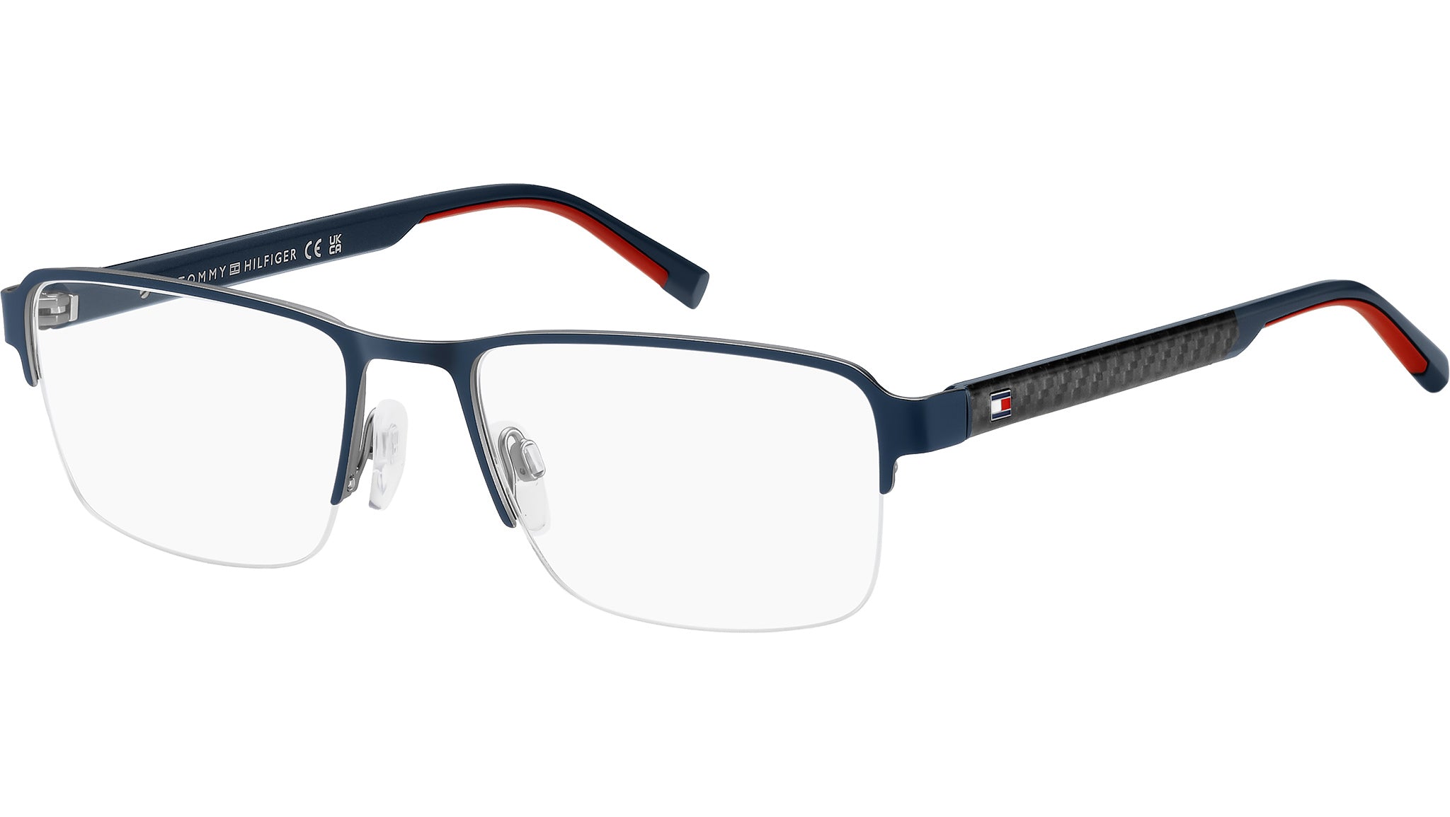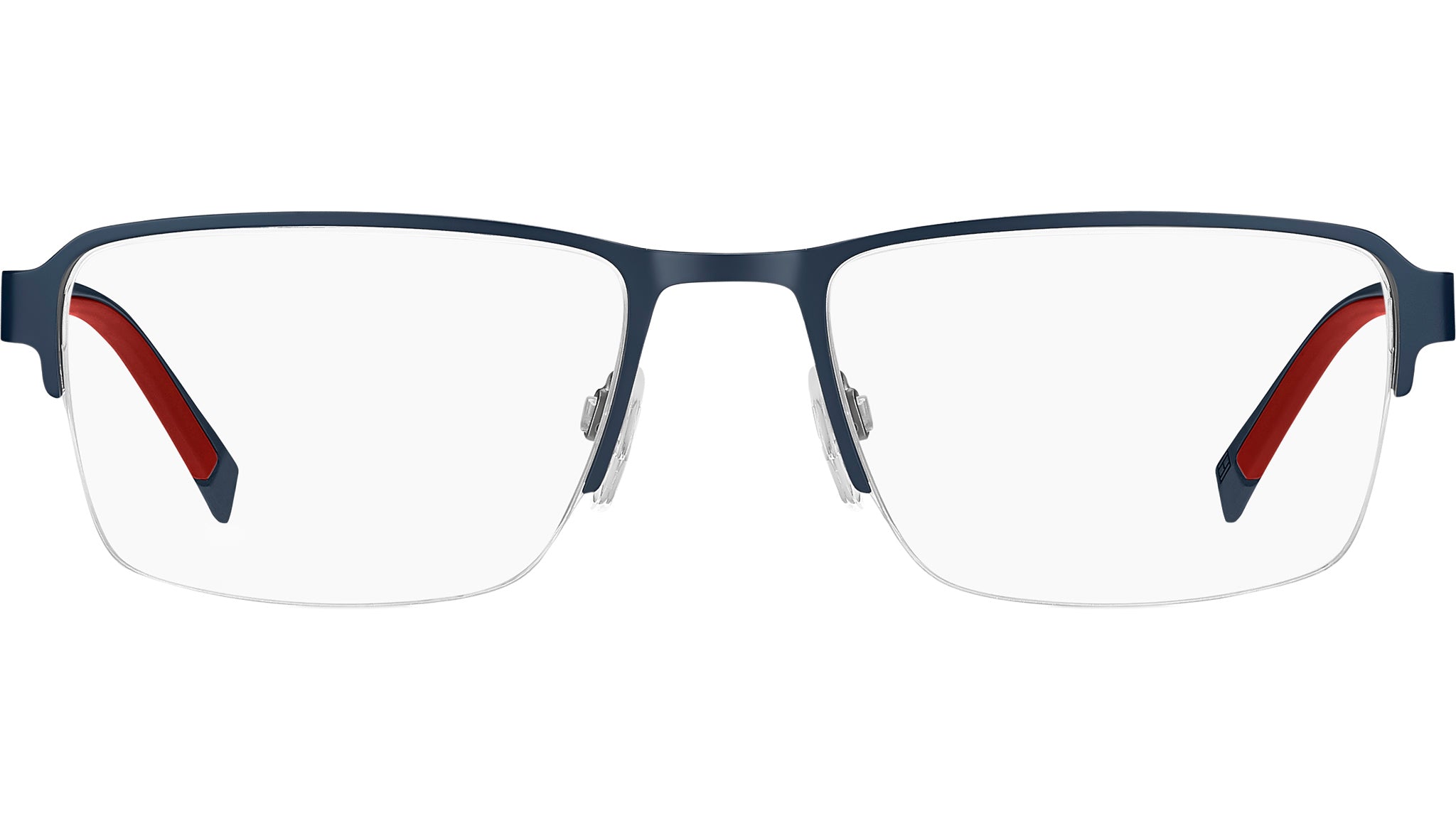 Gafas Tommy Hilfiger TH 2197 PJP con montura metálica rectangular azul y lentes de muestra. Gafas Tommy Hilfiger con numerosas cualidades técnicas, empezando por las patillas con insertos de fibra de carbono, un material ligero y muy resistente. Las bisagras son flexibles, los terminales están recubiertos de goma y las plaquetas nasales son de silicona suave. ¿El resultado? Comodidad inigualable. Como detalle estético, la icónica bandera, que realza el estilo con los polos de la marca, se complementa con la bandera de Tommy Hilfiger y una paleta de colores sobria y masculina. Línea de la marca: Sporty. Código de estilo: 109447. Código de color: PJP. Distribuidor online autorizado de Tommy Hilfiger. Sus gafas incluyen el estuche y los accesorios originales, y están cubiertas por una garantía global de 12 meses.