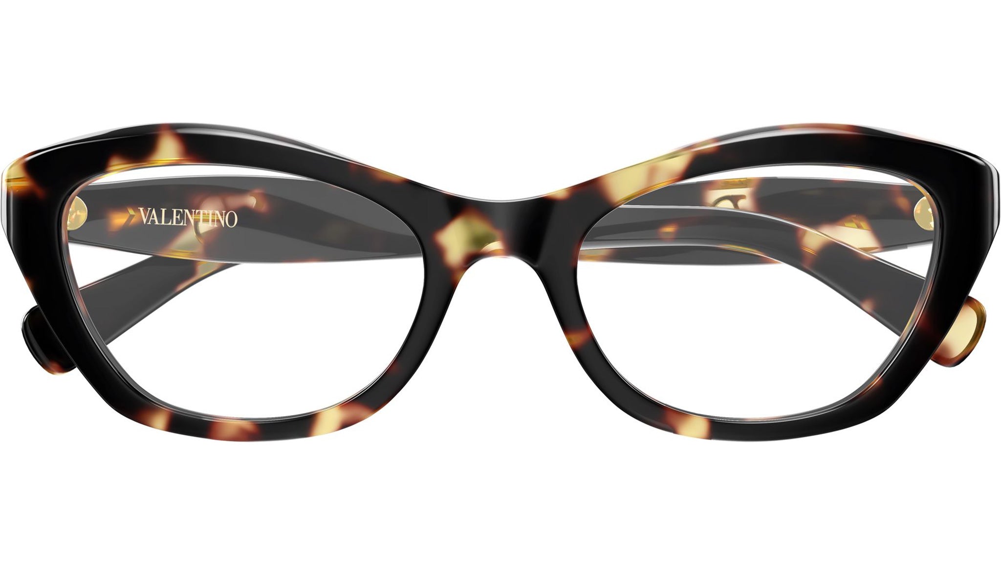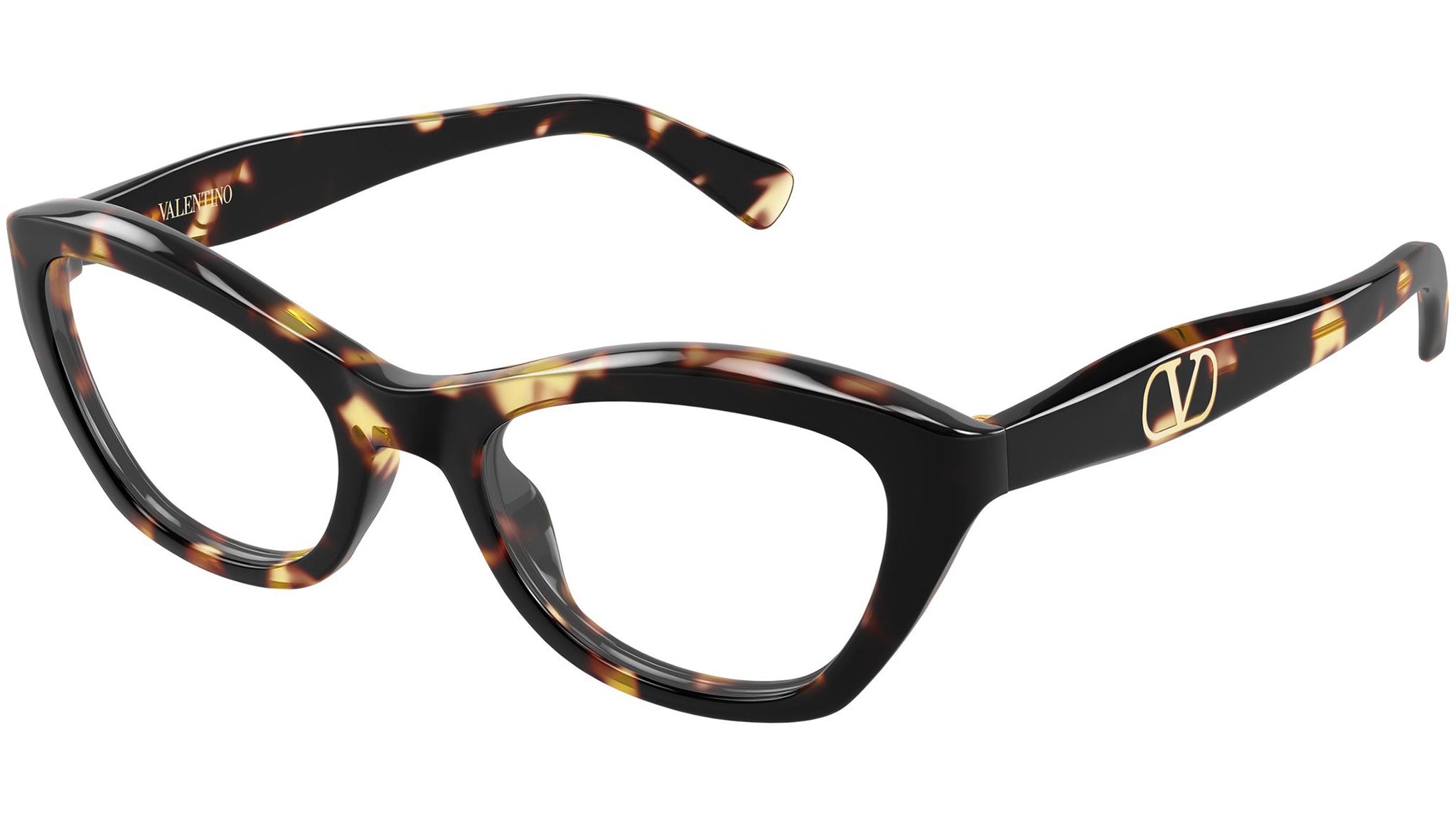 Valentino VG0012O 002 glasses for women, featuring shiny vintage tortoise cat eye recycled acetate frame and demo lenses. Brand line: V Logo. Style code: VG0012O. Color code: 002. Made in Italy. Authorized Valentino Eyewear online reseller. Your glasses will include the original case and accessories and are covered by a 12-month global warranty.